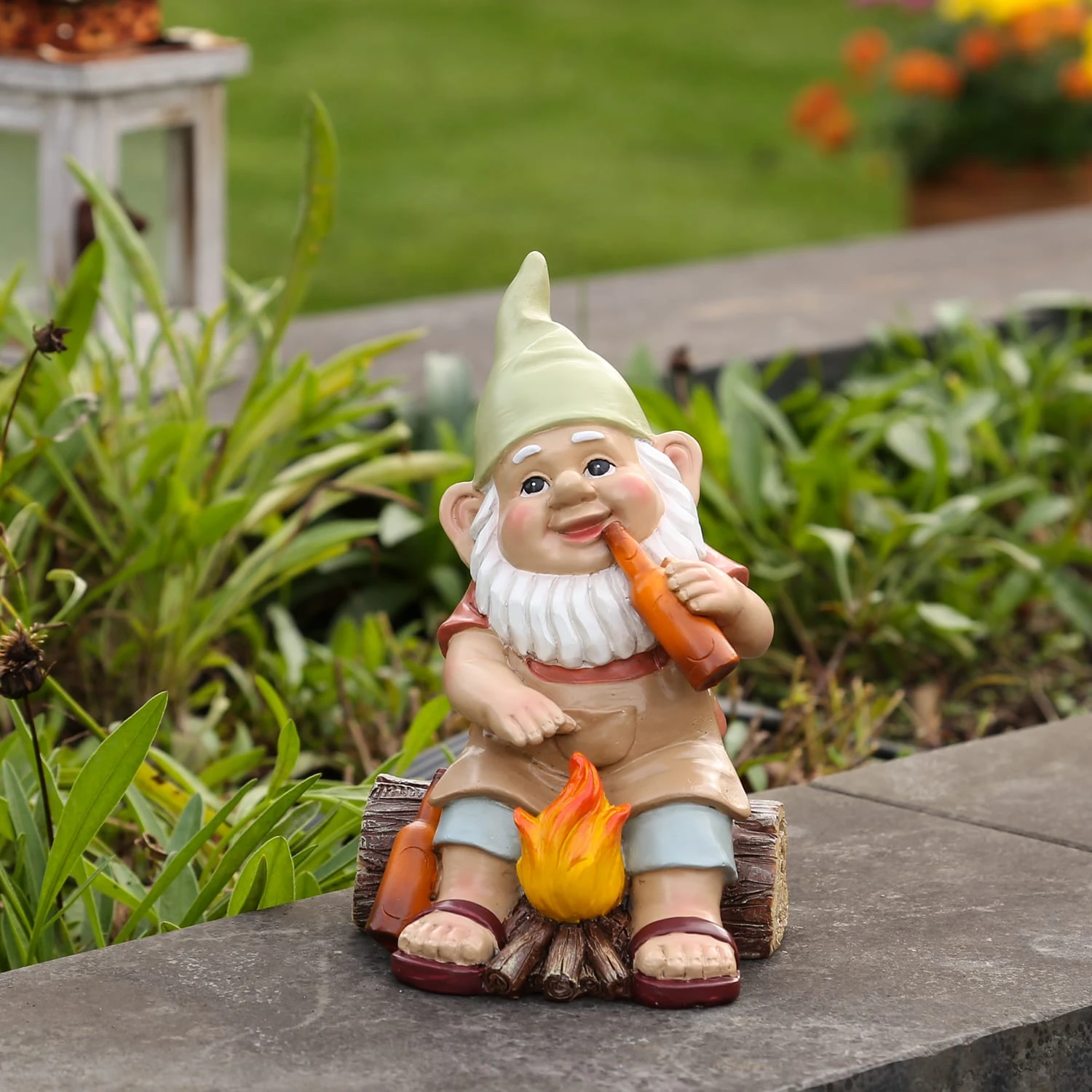 Gartenzwerg am Lagerfeuer mit Bierflaschen