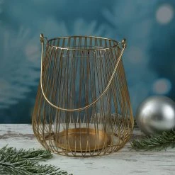 Windlicht Laterne – Metall – mit Glaseinsatz – H: 26cm – gold Diese moderne Windlicht Laterne aus Metall ist eine tolle Erscheinung. Die goldene Laterne mit einer Höhe von 26cm ist einfach genial und passt zu jeder Einrichtung.