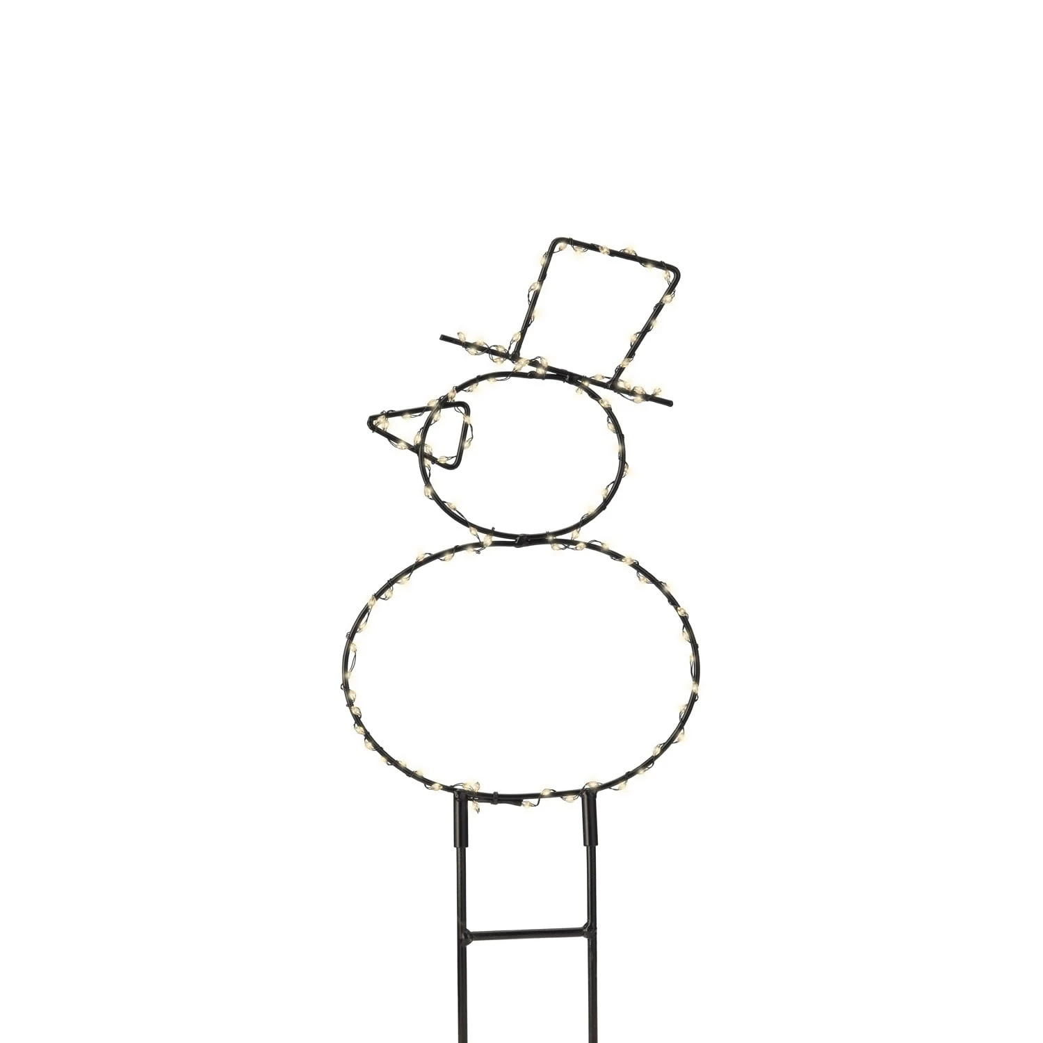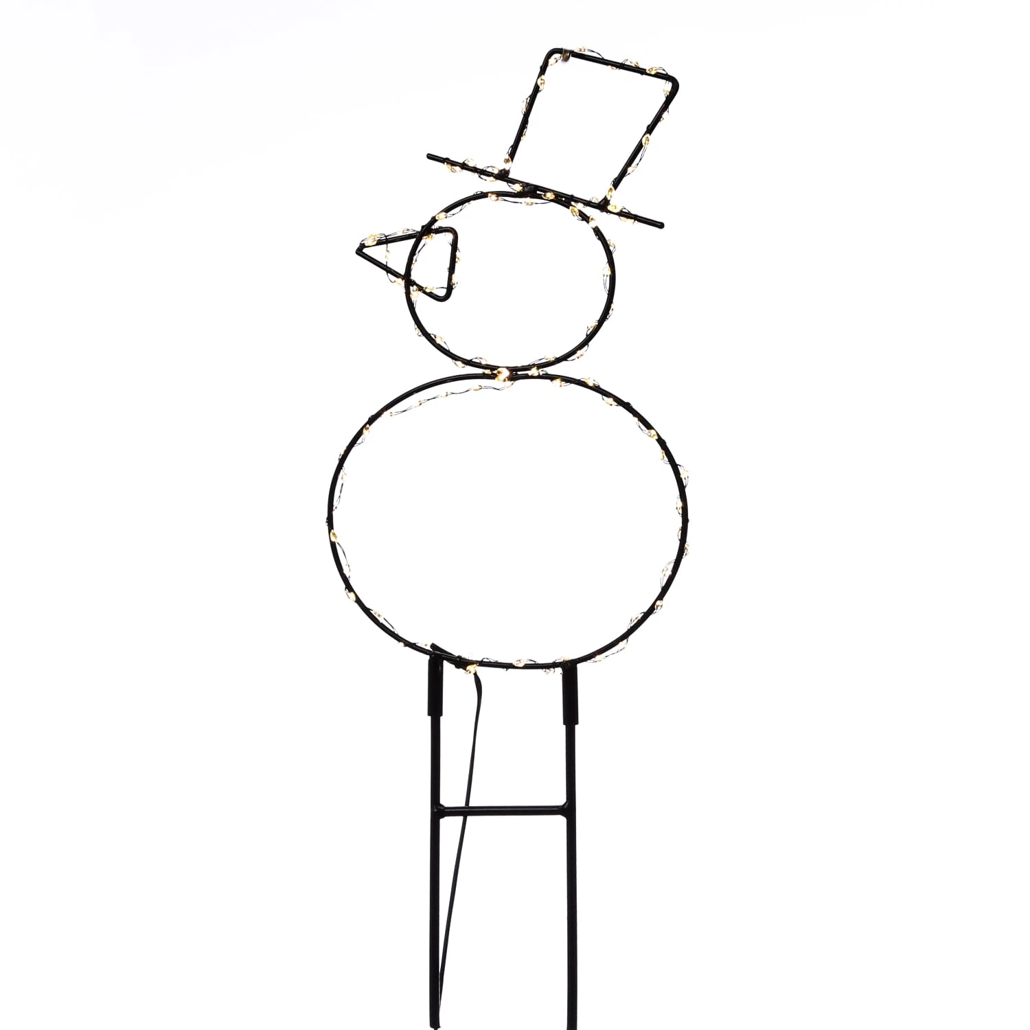 LED Gartenstecker SCHNEEMANN – 100 warmweiße LED – H: 27cm – Batterie – für Außen – schwarz Dieser LED Gartenstecker als Schneemann ist in der Weihnachtszeit ein echter Hingucker in Deinem Vorgarten, in Blumentöpfen, Balkonkästen oder im Blumenbeet im Garten. Die Drahtlichterkette mit den 100 warmweißen LED schlängelt sich um das schwarze Gestell des Schneemanns und leuchtet einfach wunderschön.