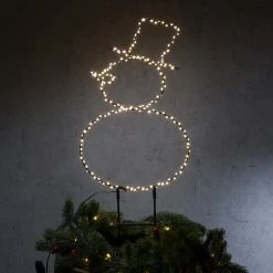 LED Gartenstecker SCHNEEMANN – 180 warmweiße LED – H: 47cm – Trafo – für Außen – schwarz Dieser LED Gartenstecker als Schneemann ist in der Weihnachtszeit ein echter Hingucker in Deinem Vorgarten, in Blumentöpfen, Balkonkästen oder im Blumenbeet im Garten. Die Drahtlichterkette mit den 180 warmweißen LED schlängelt sich um das schwarze Gestell des Schneemanns und leuchtet einfach wunderschön.