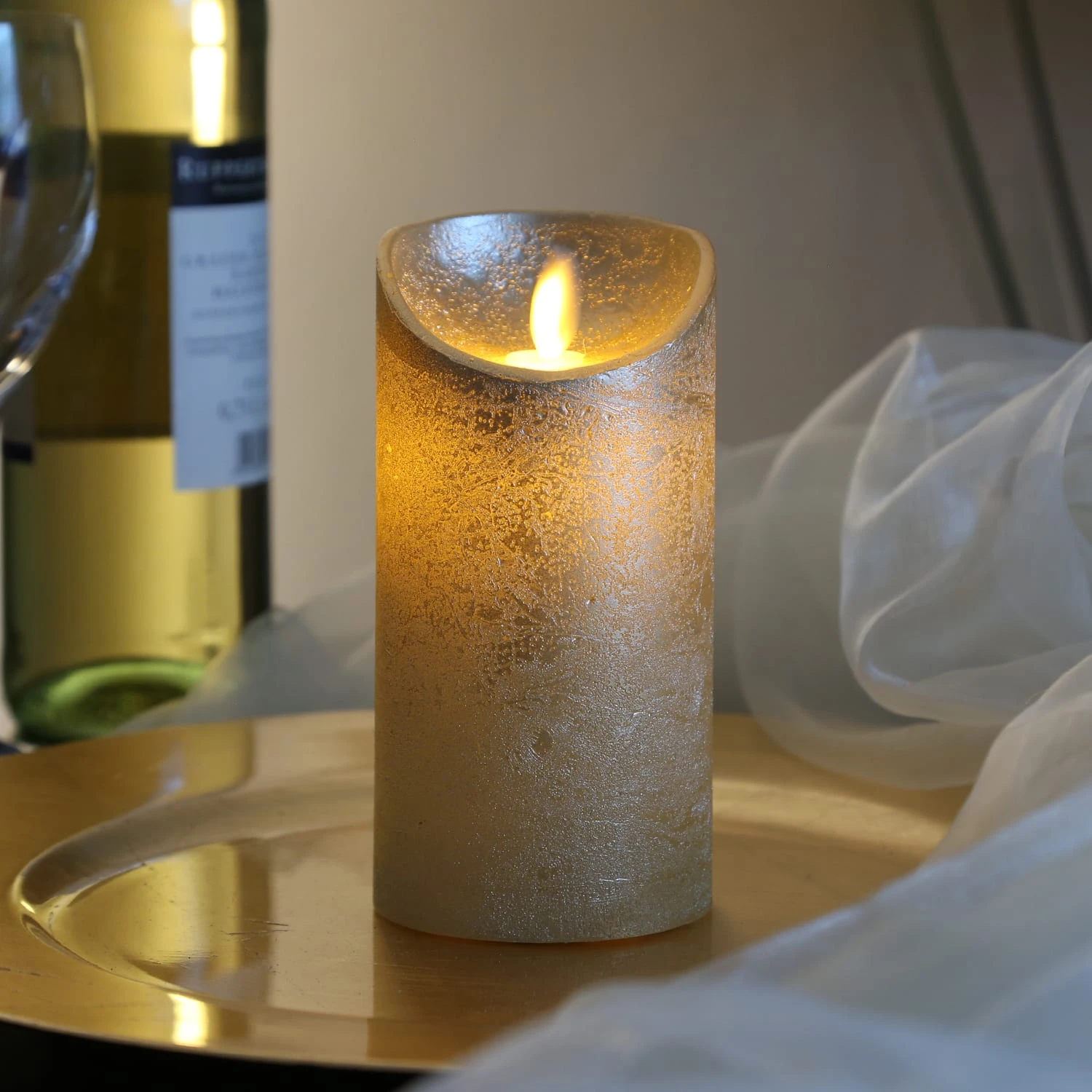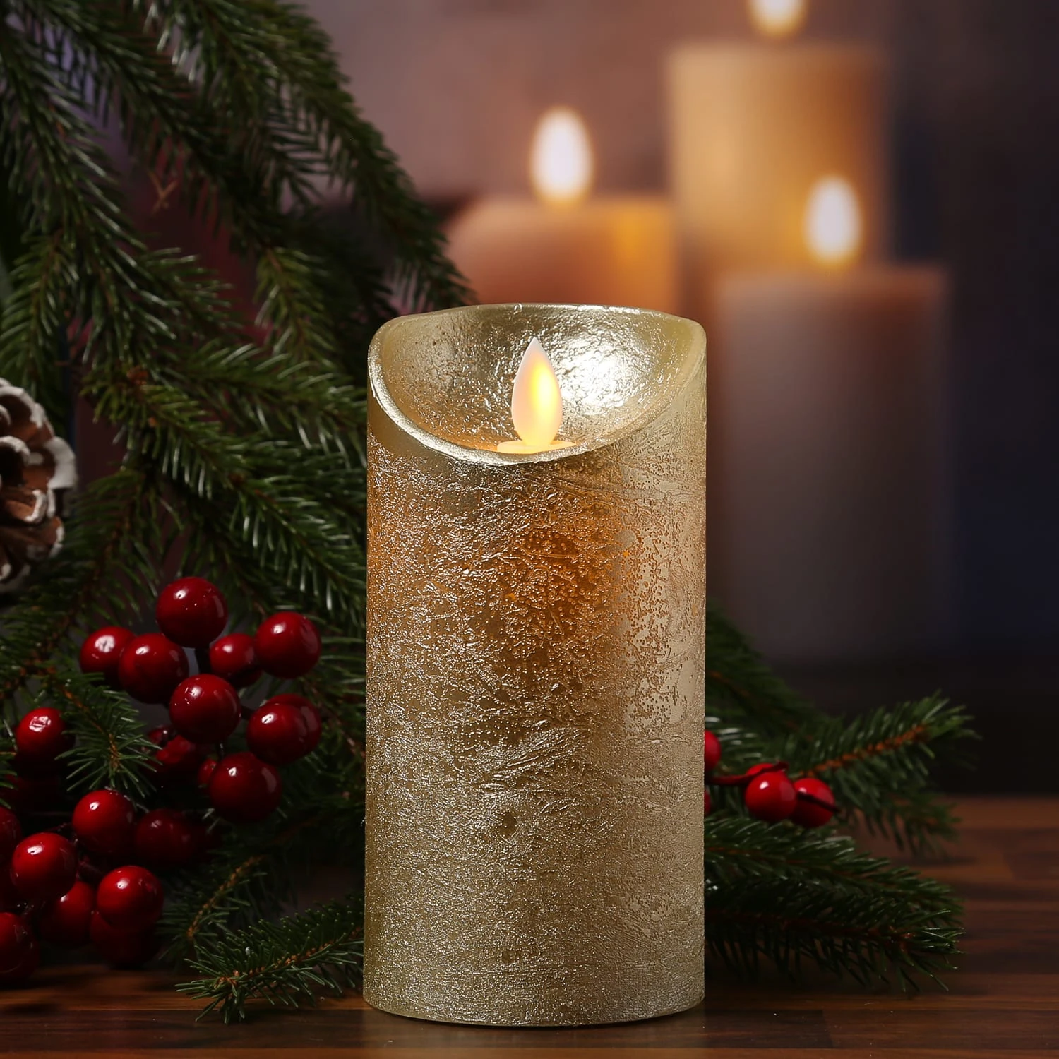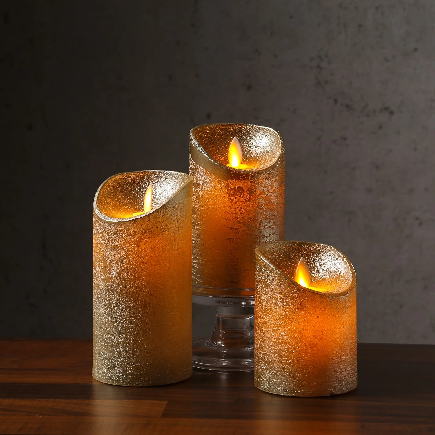 LED Kerze M-Twinkle – Echtwachs – bewegliche Flamme – Auspustfunktion – Timer – H: 15cm – gold