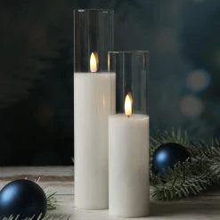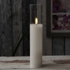 LED Kerze im Glas – Windlicht – Echtwachs – flackernde 3D Flamme – Timer – H: 25cm – weiß Dieses LED Windlicht ist zeitlos elegant und lässt sich ganzjährig in die Deko einbauen. Auch an lauen Sommerabenden auf der Terrasse oder dem Balkon wird dieses LED Windlicht gerne eingesetzt.