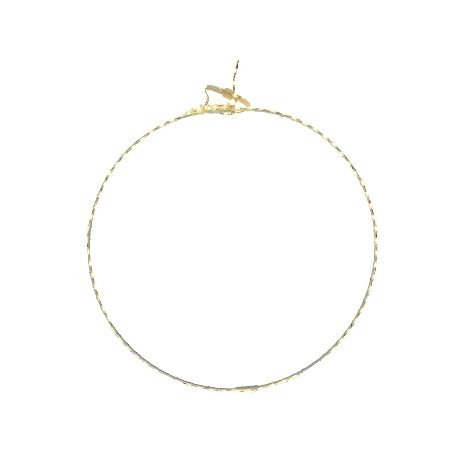 Die warmweißen LED an der Drahtlichterkette lassen den weißen LED Metallring strahlen! Besonders klasse ist, dass die Zuleitung ebenfalls mit LED bestückt ist und leuchtet.