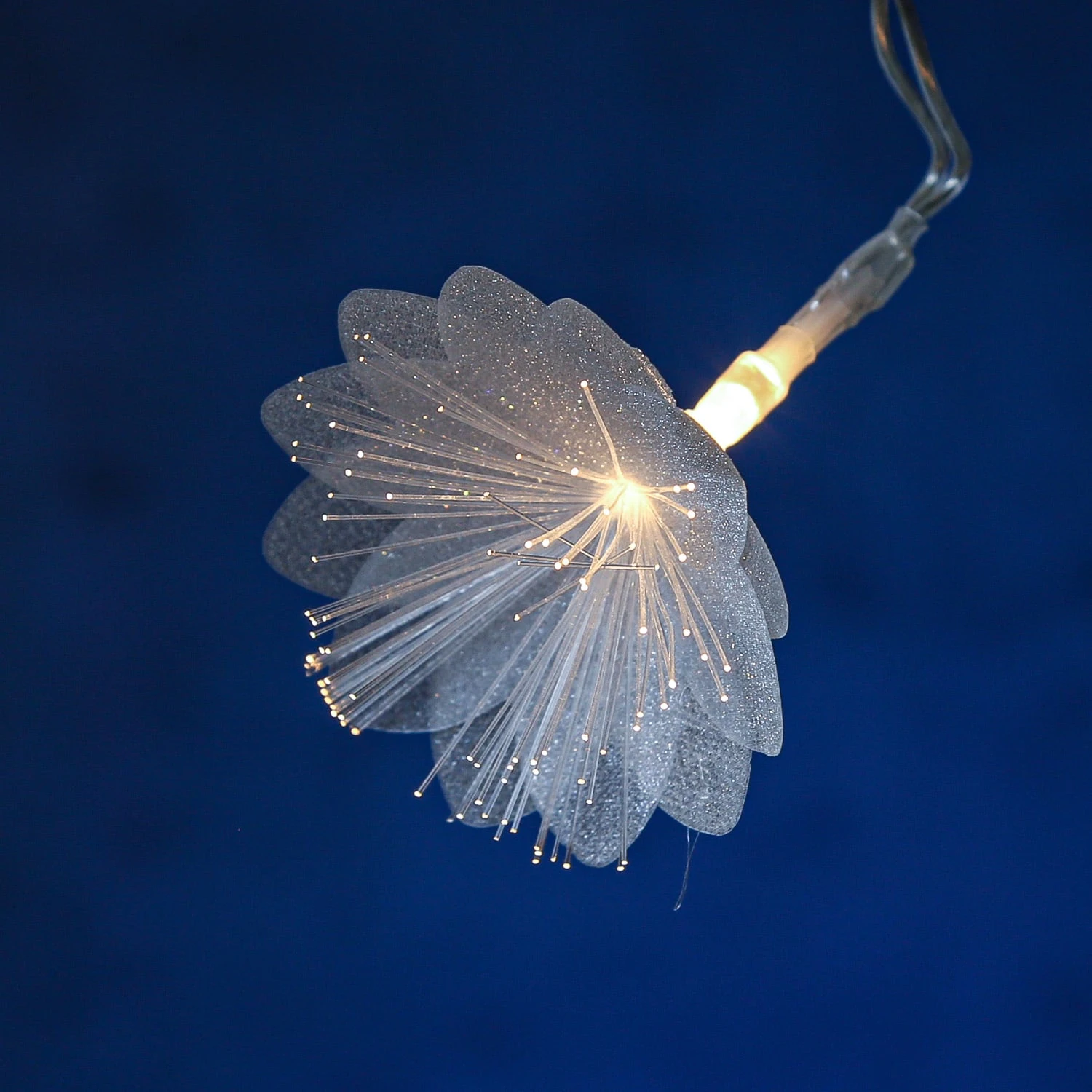LED Lichterkette Blume aus Fiberglas – 20 warmweiße LED – Trafo – L: 3,72m – transparent