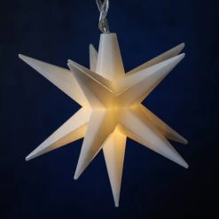 LED Lichterkette 3D Sterne – 10 warmweiße LED – L: 1,45m – Timer – Trafo – für Außen – weiß Die Lichterkette mit den weißen Sternen ist genial zur Dekoration für Deinen Außenbereich. Verpasse Deinem Balkon, Terrasse oder Vorgarten einen tollen weihnachtlichen Look.