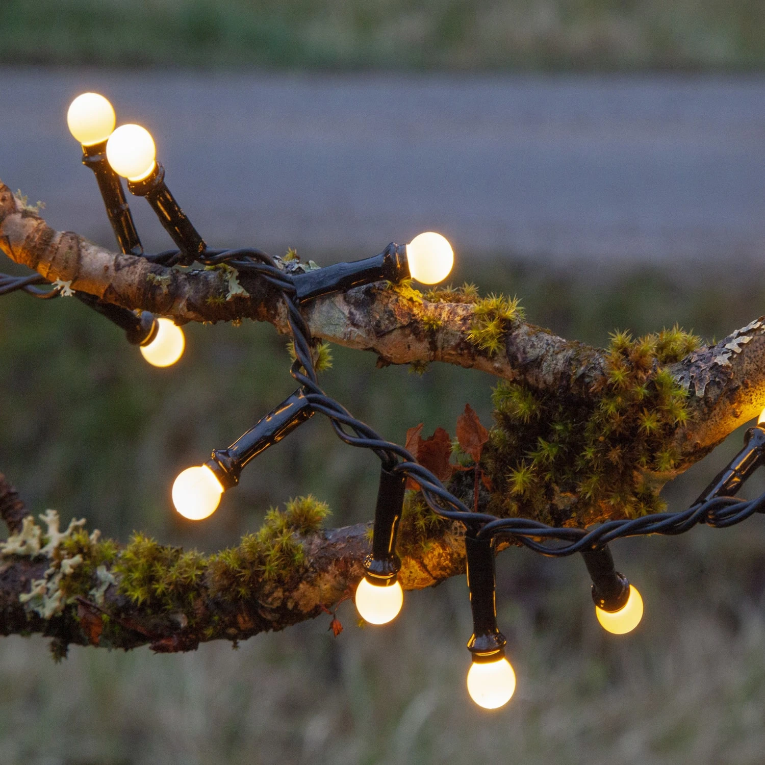 Die LED Lichterkette mit den opalen Kugeln, ist die perfekte Dekoration für Deinen Garten, Deinen Balkon oder Deine Terrasse. Aber auch in der Wohnung ist die Lichterkette ein absoluter Blickfang. Mit dem warmweißen Licht leuchten die weißen Kugeln besonders schön.