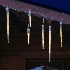 Der Abstand der Eiszapfen ist 50cm und die gesamte Leuchtlänge der Lichterkette 2,5m.