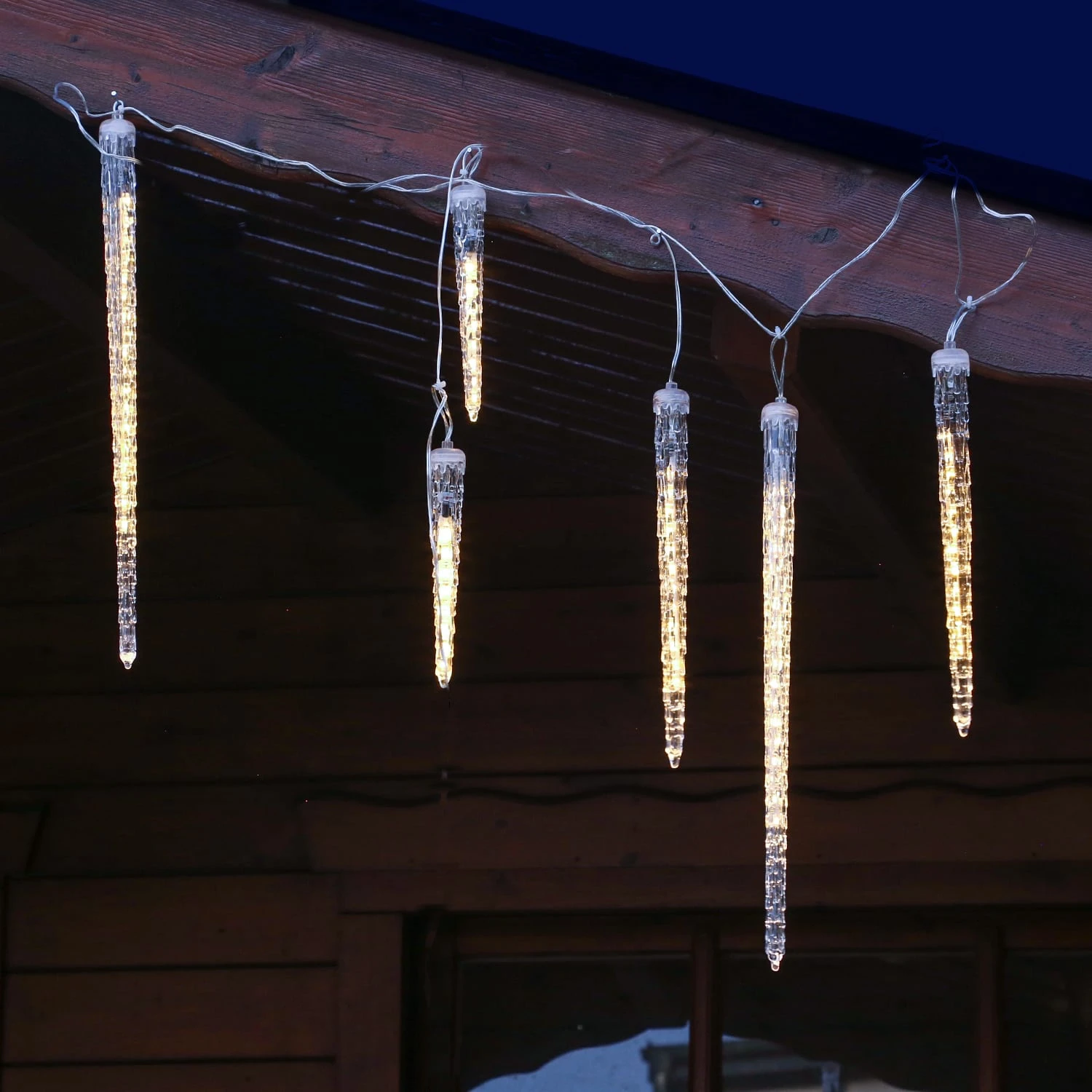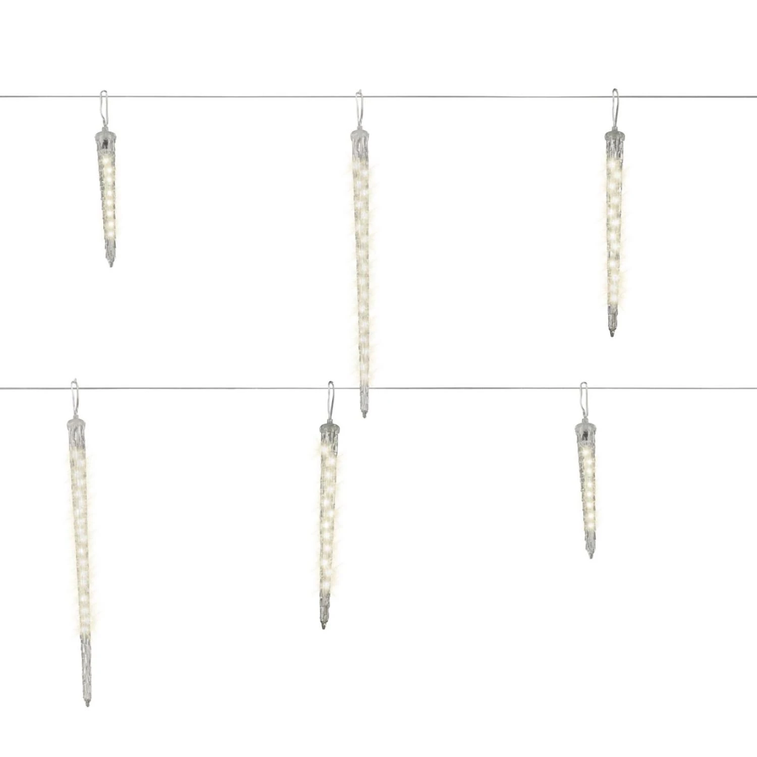6 beleuchtete Eiszapfen (2x Groß, 2x Mittel, 2x Klein)