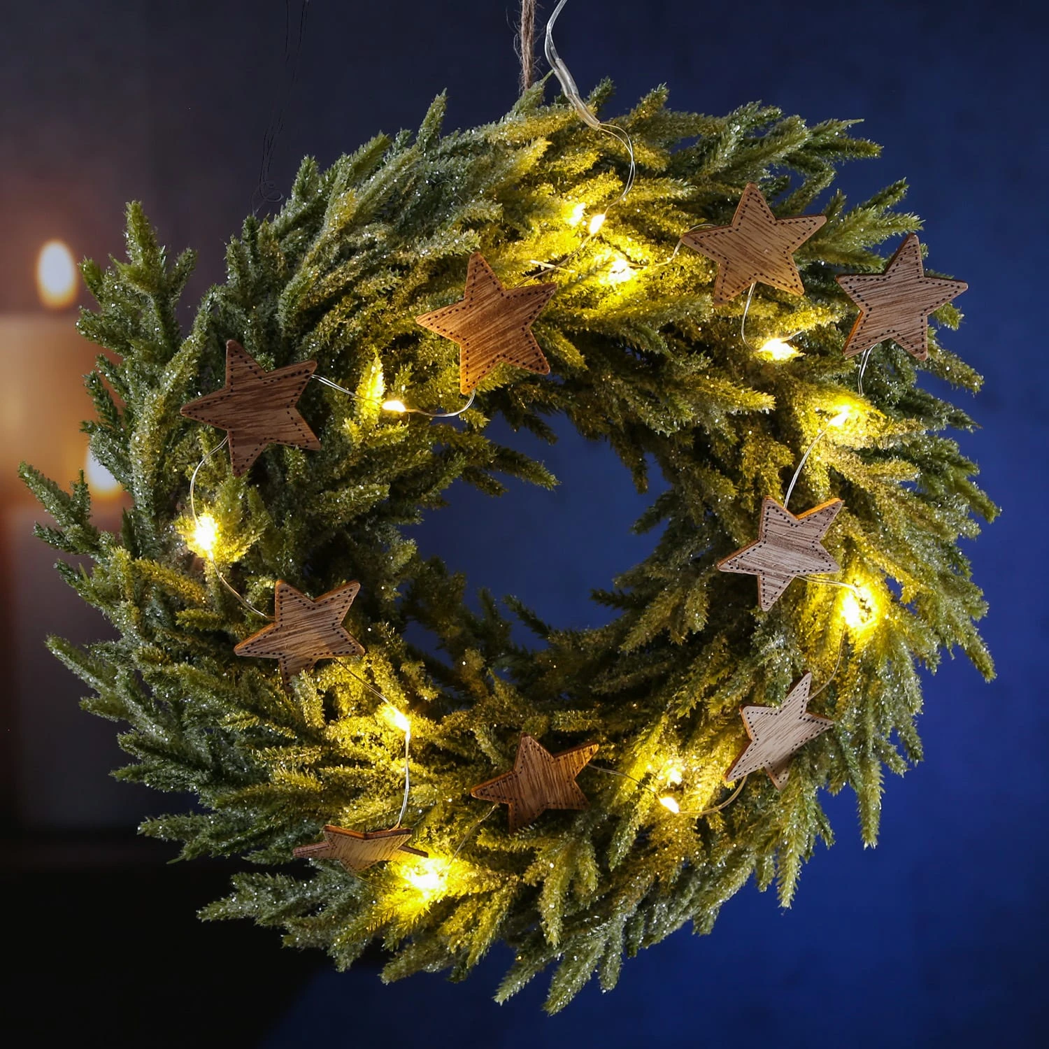 Erscheinung: Drahtlichterkette mit 9 Holzsternen