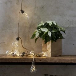 10 Glühbirnen mit je 3 warmweißen LED präsentieren sich an einem natürlichen Juteseil. Perfekt für die Dekoration in deinem Haus, der Wohnung oder im Wintergarten.