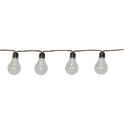 10 Glühbirnen mit je 3 warmweißen LED präsentieren sich an einem natürlichen Juteseil. Perfekt für die Dekoration in deinem Haus, der Wohnung oder im Wintergarten.