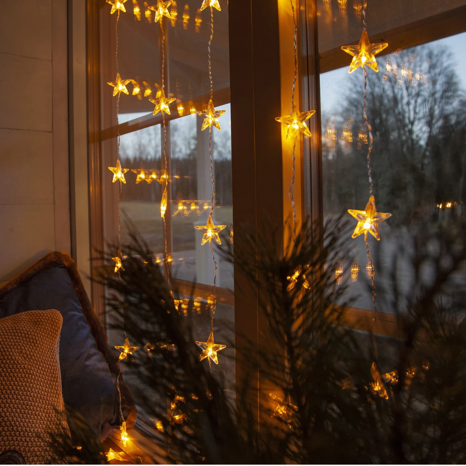 LED Deko Lichtvorhang mit leuchtenden Sternen