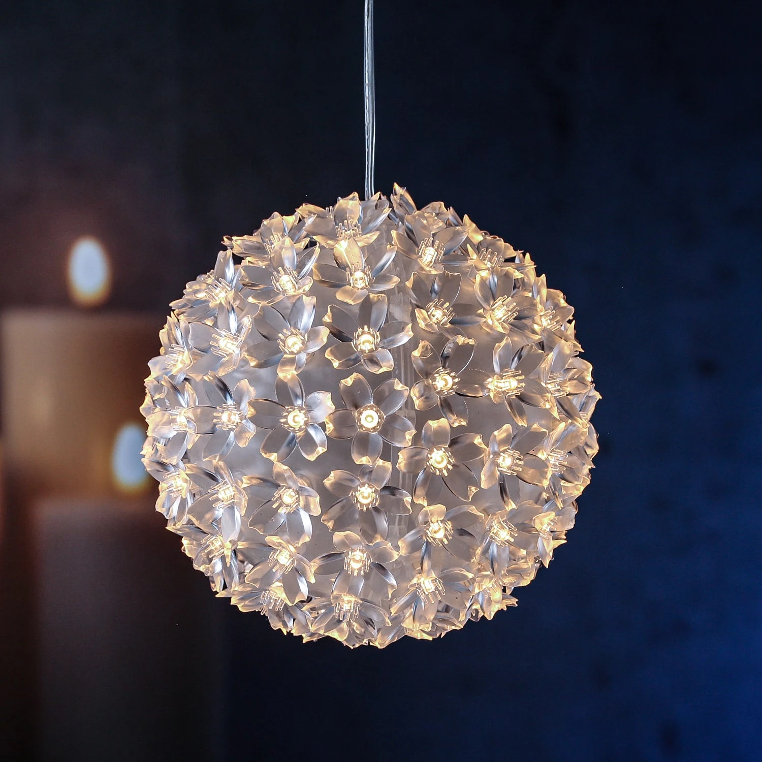 LED Lichterkugel – Blume – D:15cm – 100 warmweiße LED – Kabel – transparent – innen - transparent