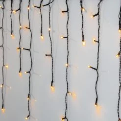 Du dekorierst damit Deine Fassade, das Balkongitter oder auch eine Hecke. Durch die kurzen Fasern kannst Du auch Deine Dachrinne beleuchten. Bei etwas Wind bewegt sich der kurze Vorhang dann und glitzert.