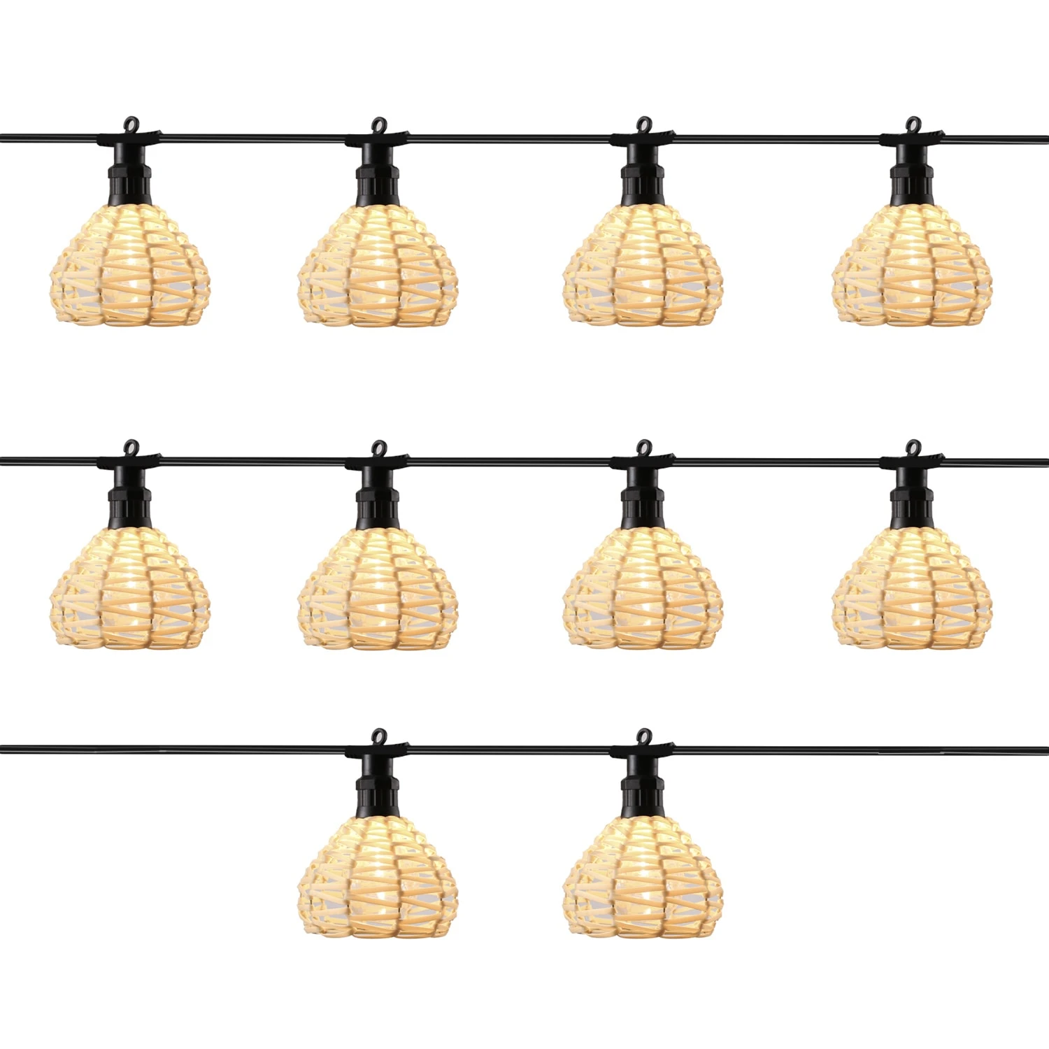 Die LED Party Lichterkette Roby ist ein wunderschöner Blickfang, mit dem Du Deine Terrasse, Deinen Balkon, Garten oder Deine Wohnung dekorieren kannst. Die Leuchten in Korboptik lassen die Lichterkette besonders schön mit den warmweißen Filament LED Glühbirnen leuchten.