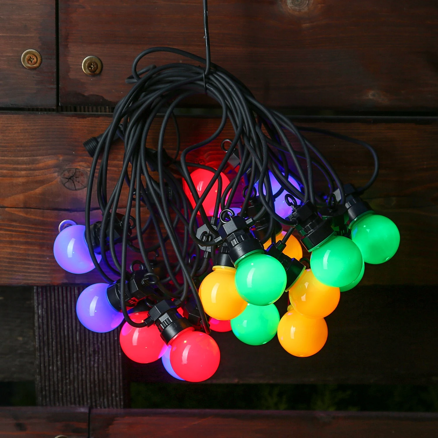 LED Party Lichterkette Circus – 20 bunte LED – L: 8,8m – koppelbar bis 100 LED – 8 Funktionen – für Außen Die LED Party Lichterkette Circus ist ein wunderschöner Blickfang, mit dem Du Deine Terrasse, Deinen Balkon, Garten oder Deine Wohnung dekorieren kannst. Die 20 bunten Kugeln lassen die Lichterkette besonders schön leuchten.