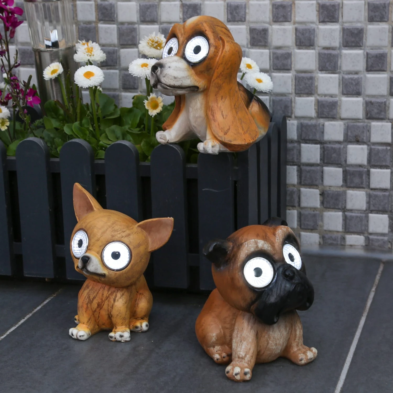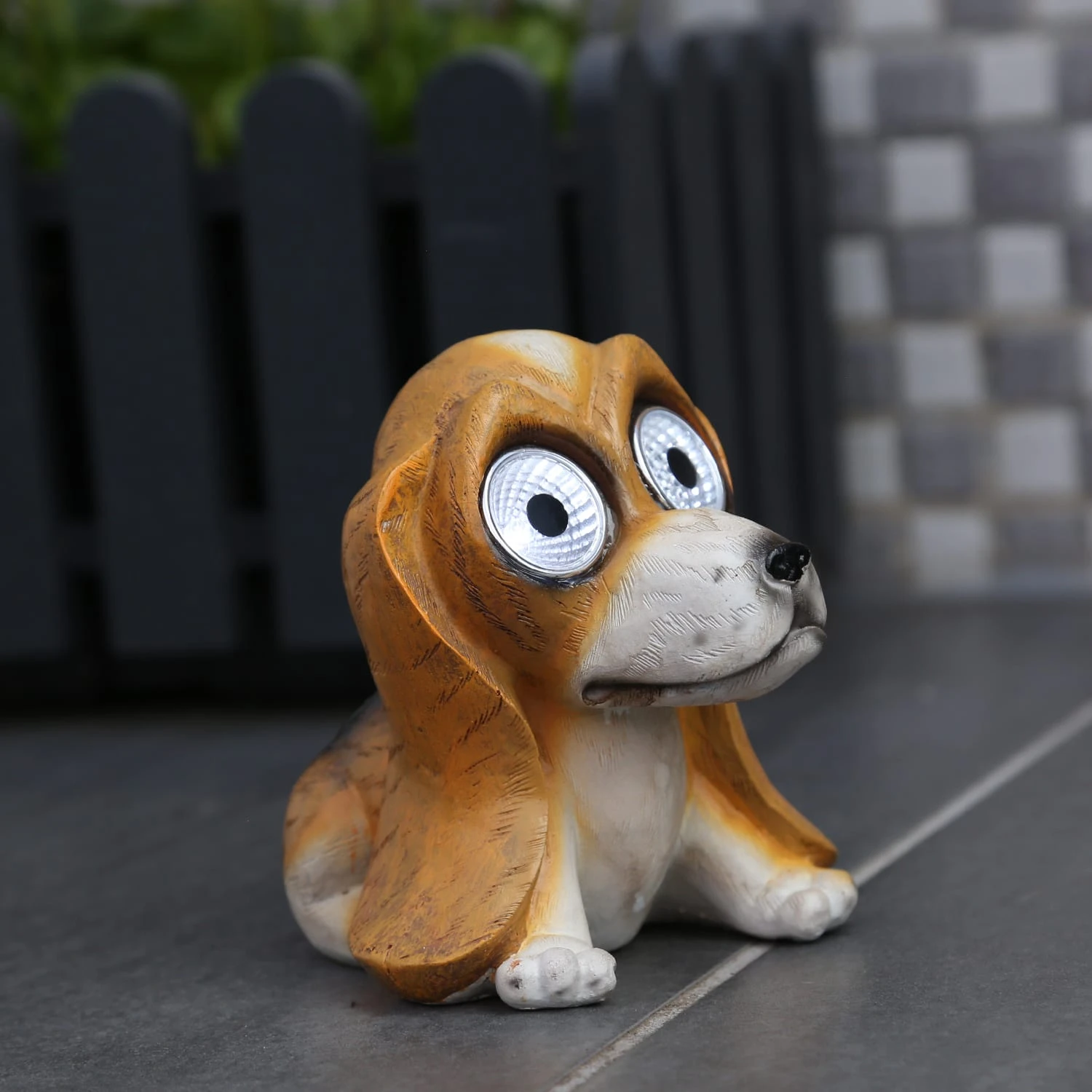 Viel Spaß mit der LED Solar Hund Gartenfigur!