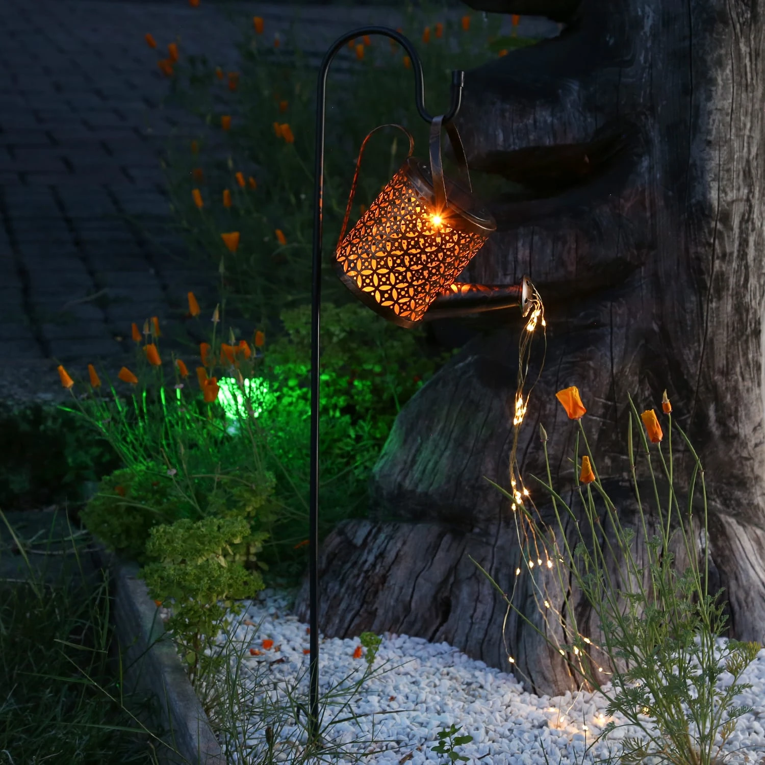 LED Solar Gießkanne – Gartendekoration – 36 warmweiße LED – H: 80cm – Dämmerungssensor – für Außen