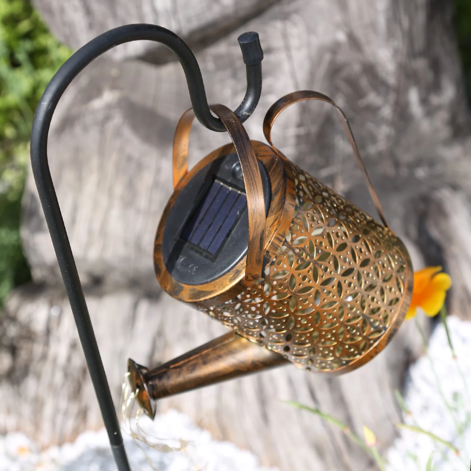 Mit dieser tollen Lampe kannst Du Deine ganz eigene Gartendekoration realisieren. Über einem Eimer oder einem alten Waschzuber montiert, füllt die Gießkanne plätschernd ihr Wasser ein.