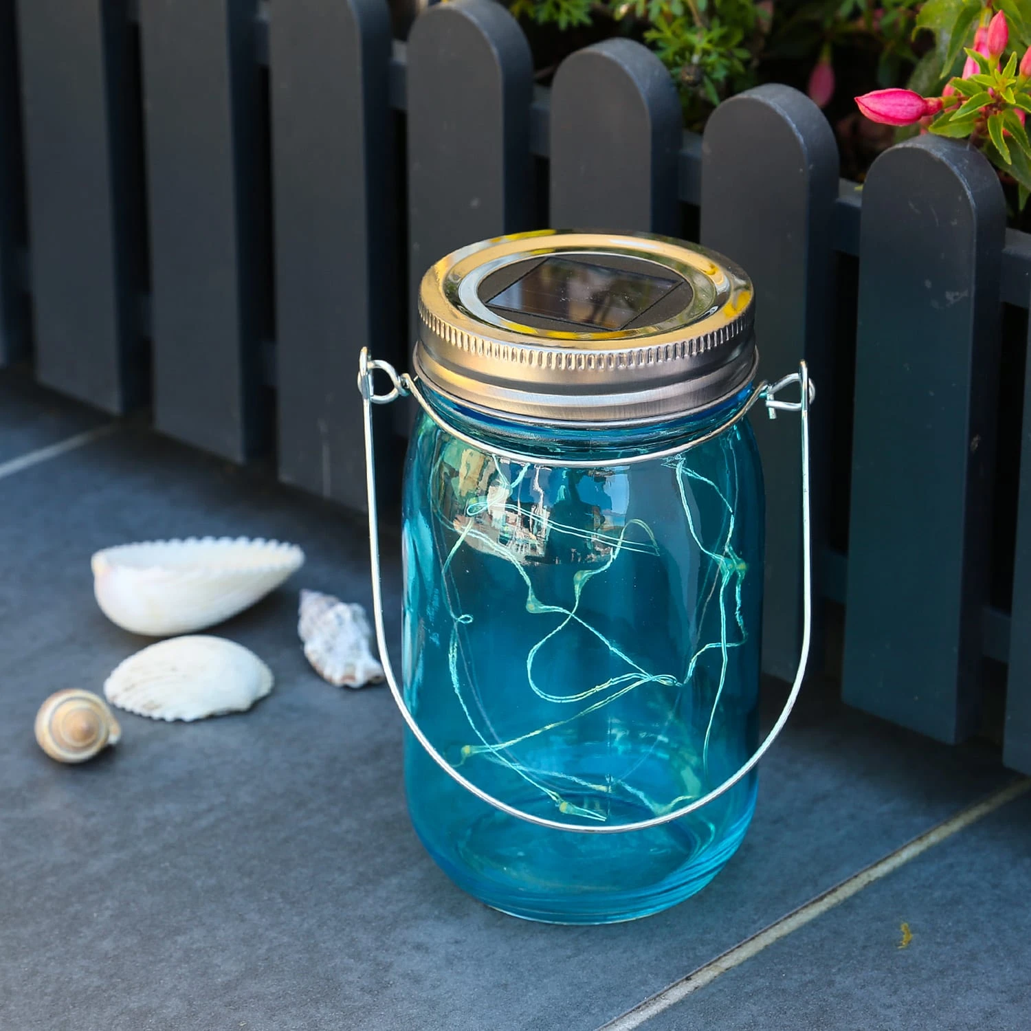 Das blaue LED Solarglas ist eine wunderschöne Ergänzung für Deinen Garten, Balkon, Deine Terrasse oder beim Camping. Mit der warmweißen LED Drahtlichterkette zaubert das Solarglas eine gemütliche Atmosphäre.