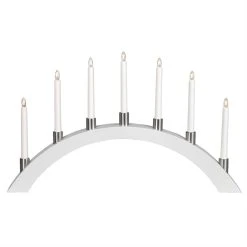 Der 67cm breite und 40cm hohe Lichterbogen ist mit 7 Kerzen mit warmweißen Lämpchen bestückt. Er eignet sich perfekt für die Dekoration am Fensterbrett oder auf einer Kommode.