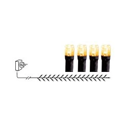 Die LED Lichterkette wird mit einem wettersicheren IP44 Transformator betrieben. Mit 5 Meter Zuleitung zwischen Trafo und Lichterkette bist Du besonders flexibel im Einsatzort.