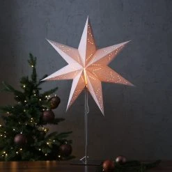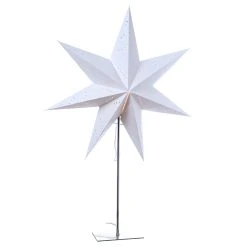 Papierstern LUNA – stehend – 7-zackig – D: 54cm, H: 75cm – inkl. E14 Fassung u. Kabel – weiß Der reinweiße Papierstern LUNA gehört nicht umsonst zu den Topsellern. denn dieser Stern ist einfach wunderhübsch, zeitlos elegant und passt zu jedem Einrichtungsstil.