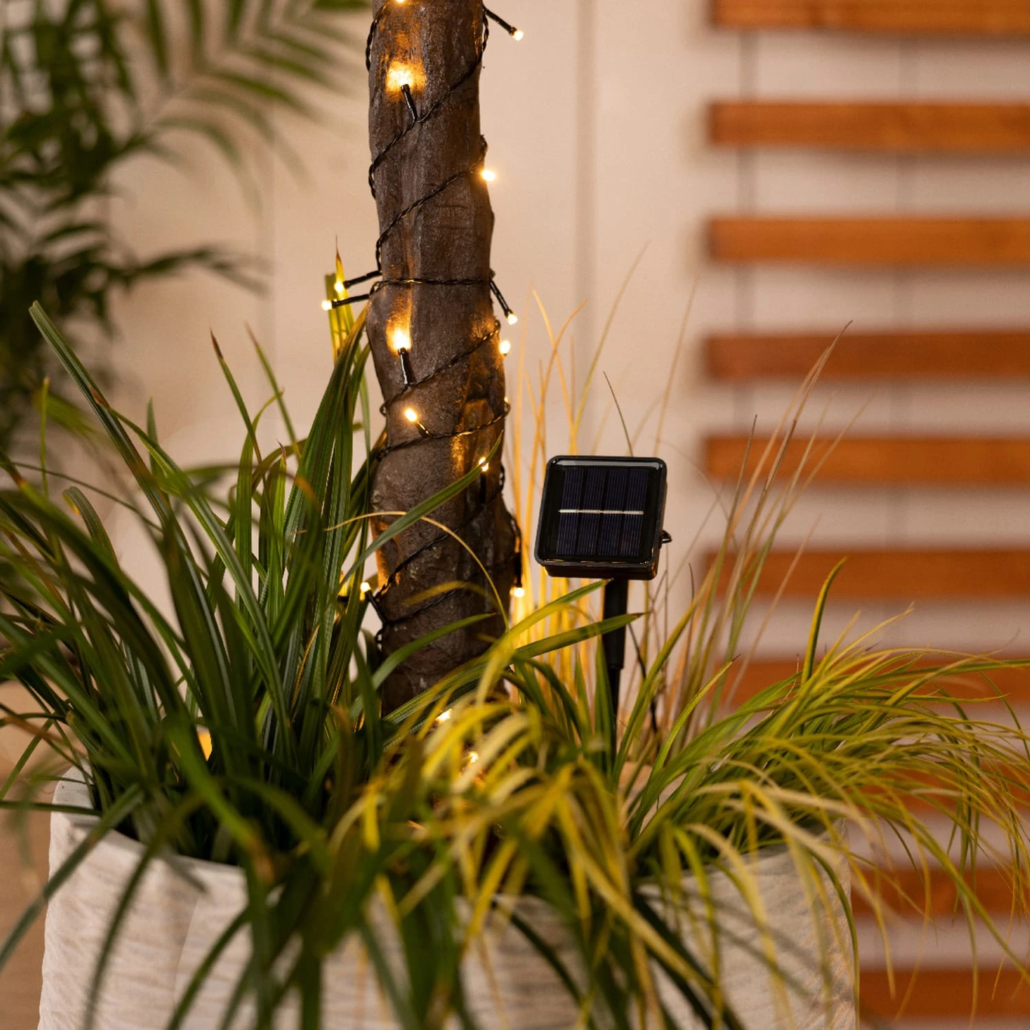 Dieser Hingucker benötigt keine weitere Stromquelle. Die LED Solar Lichterkette ist mit einem Solarpanel ausgestattet. Der Akku lädt sich durch die Energie der Sonne auf. Bei Dunkelheit schaltet sich die LED Solar Lichterkette automatisch an.