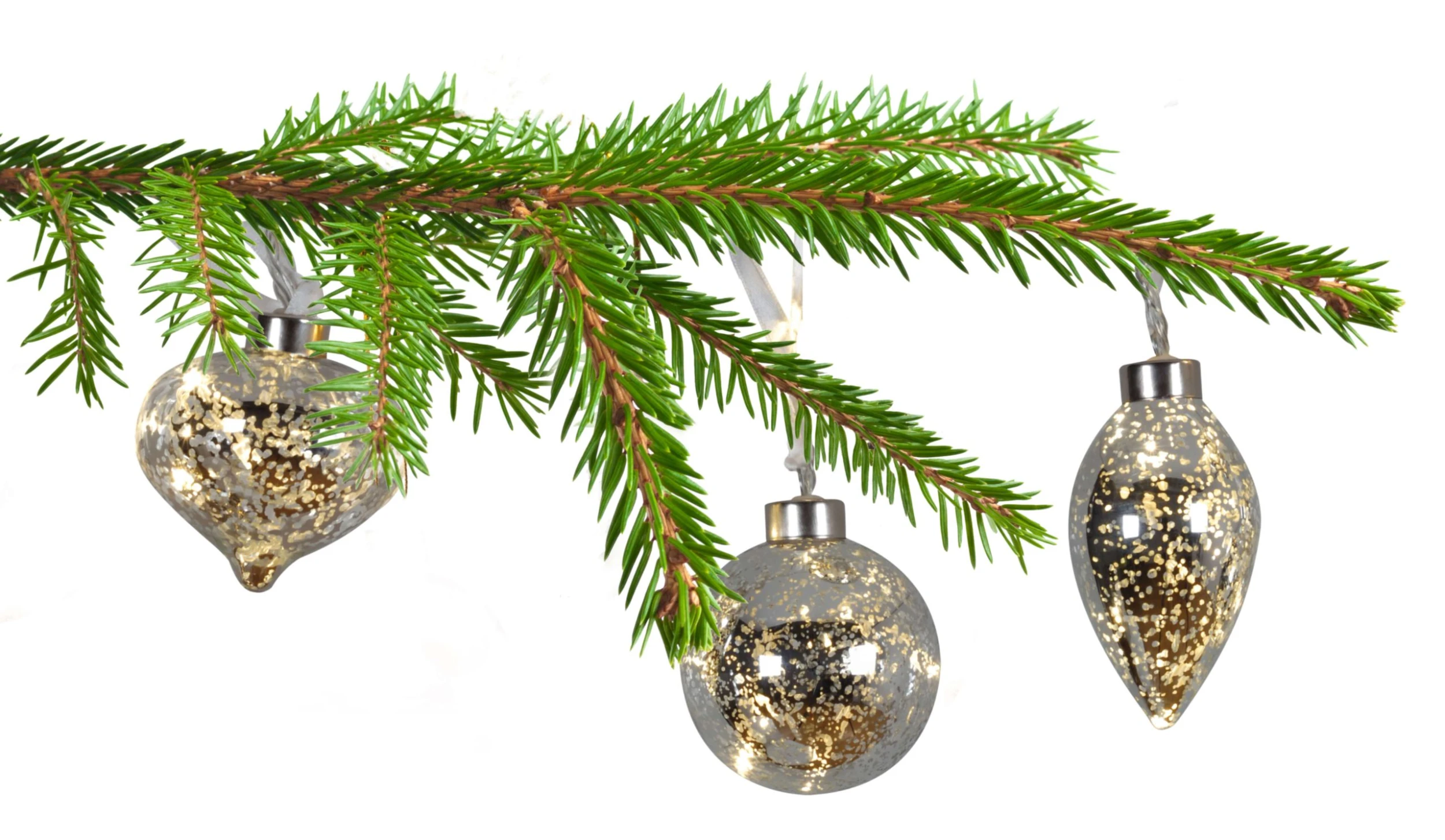 3er-Set LED-Glaskugeln in Silber