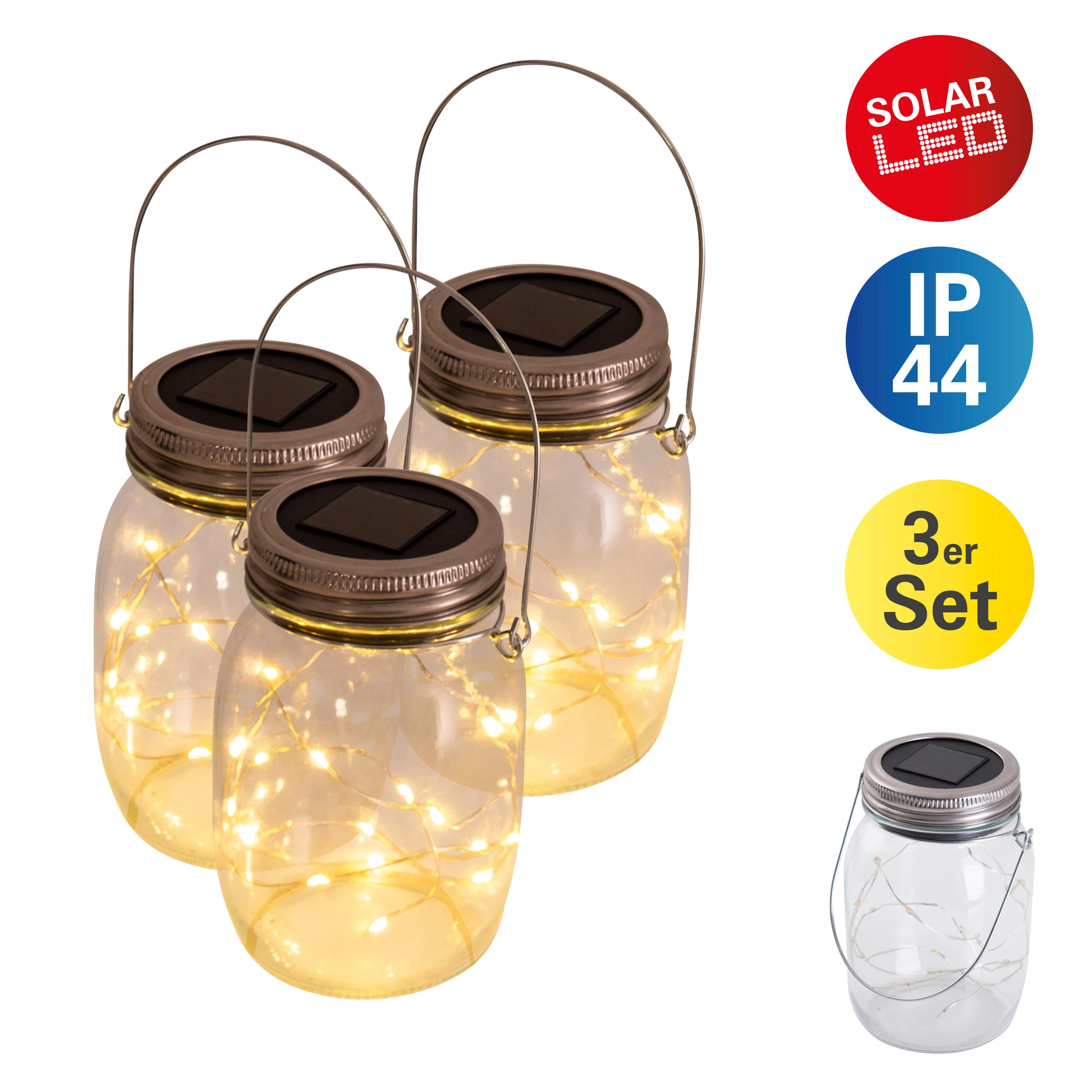 3er-Set LED-Solar-Outdoor-Tischleuchte (H) 13 cm in Klar