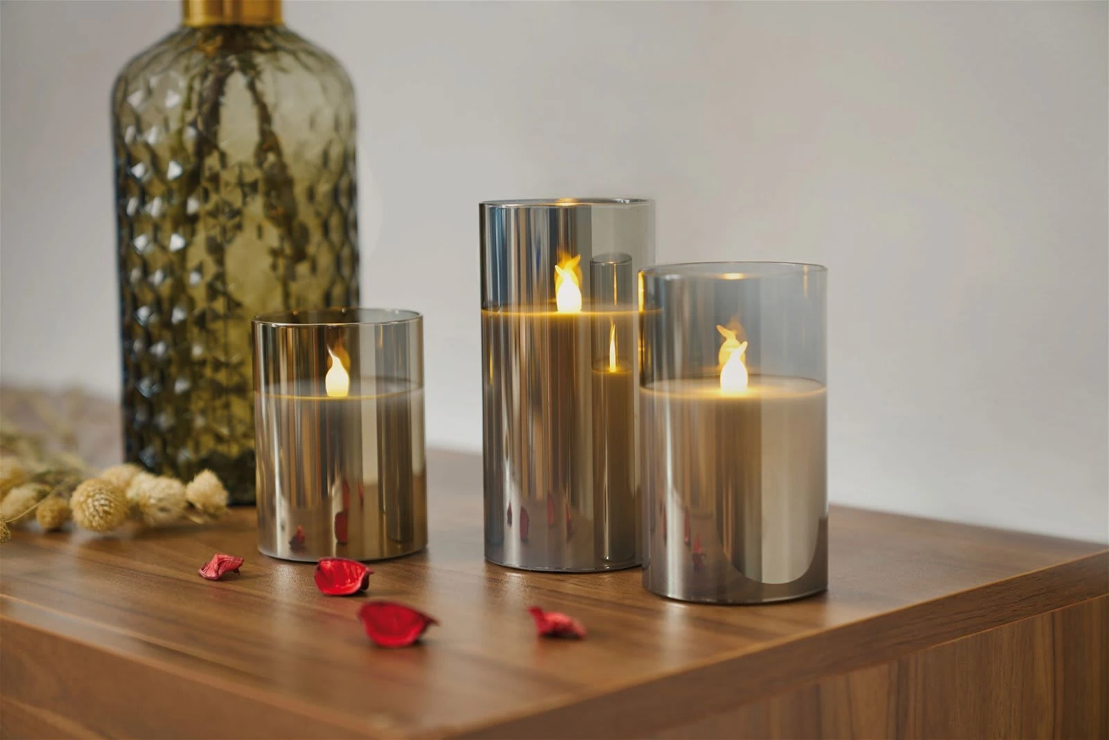 Classy Smokey Candle Wachskerze 3er Set Batterie Grau/Weiß Glas/Wachs