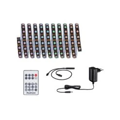 Das LED Strip Set Dynamic Rainbow RGB in 3m Länge schafft ein besonderes Ambiente im Home-Entertainment und im Gaming Bereich. Mit seinem angenehm, ruhig wechselnden, dynamischen Farbspiel lassen sich effektvolle Lichtakzente setzen. Die komfortable Steuerung per Infrarot-Fernbedienung ermöglicht eine kinderleichte Konfiguration von unzähligen eigenen Farbverläufen und Geschwindigkeiten. Die sehr kleinen Komponenten können ohne Werkzeug Plug & Play verbunden werden und mit dem beiliegenden Netzteil sofort in Betrieb genommen werden.