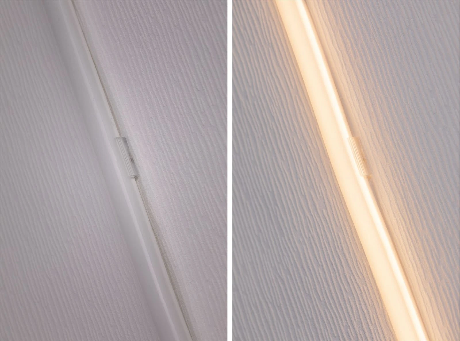 Dezent, homogen & lichtstark! Der MaxLED Flow Strip 1,5m spendet mit einer Leistung von 22,2W flächiges Licht ohne sichtbare LED-Punkte. Er ist in einem flexiblen Profil mit großem, effektvollen Ausstrahlwinkel vergossen und kann sowohl in geschwungenen Linien als auch in geraden Strecken verlegt werden. Zur Befestigung sind transparente, kaum sichtbare Halteclips, Schrauben und Dübel im Set enthalten. Dank IP67 Schutz eignet sich der filigrane Stripe auch für Feuchträume und bringt Licht in jedes Wellnessbad.