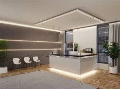 Ob Küchenarbeitsplatz, Werkstatt oder andere Arbeitsflächen – die MaxLED 500 Full-Line COB Strips eignen sich hervorragend als blendfreies Arbeitslicht. Das MaxLED 500 COB Basisset mit 480 LED´s/m erzeugt ein absolut homogenes Lichtbild ohne sichtbare Lichtpunkte. Durch den Lichtverbinder ist ein nahtloses Verbinden möglich und führt das lineare Lichtbild ohne Unterbrechung fort. Das Basisset enthält neben dem Streifen, einen 5-Pin Adapter, der die Verbindung zu allen MaxLED Zubehör- und Steuerungskomponenten ermöglicht. Der Strip ist mit 8 mm besonders schmal und passt damit auch in sehr filigrane LED Profile. Der breite Ausstrahlwinkel von 180° verteilt das Licht optimal ohne Schattenbildung. Die durchgängige Phosphorschicht schützt die LEDs vor Staub und Feuchtigkeit, die Kontaktstellen haben IP20. Das warmweiße Basisset lässt sich mit dem passenden Einzelstrip einfach erweitern.