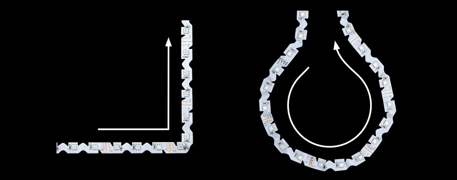 Die flexiblen Strips mit einer Länge von 3 Metern, bieten Bastelfreunden durch die einzigartige Stanzung viele kreative Verlegemöglichkeiten. Sie lassen sich problemlos um Ecken bis minimal 90 Grad biegen, passen sich dreidimensional Kanten und Kurven an und sorgen für ein außergewöhnliches Lichtbild. Mit dem RGB FlexLED Basisset sind Sie bestens für Ihr nächstes DIY-Projekt ausgestattet.