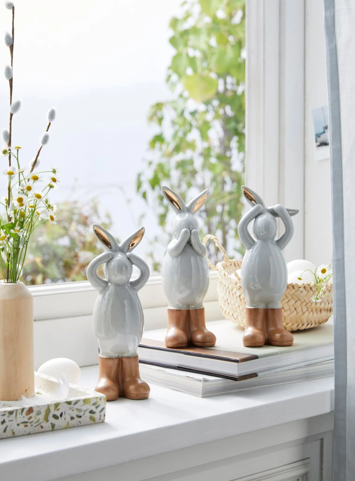 Edel und witzig zugleich sind die drei Häschenfiguren.