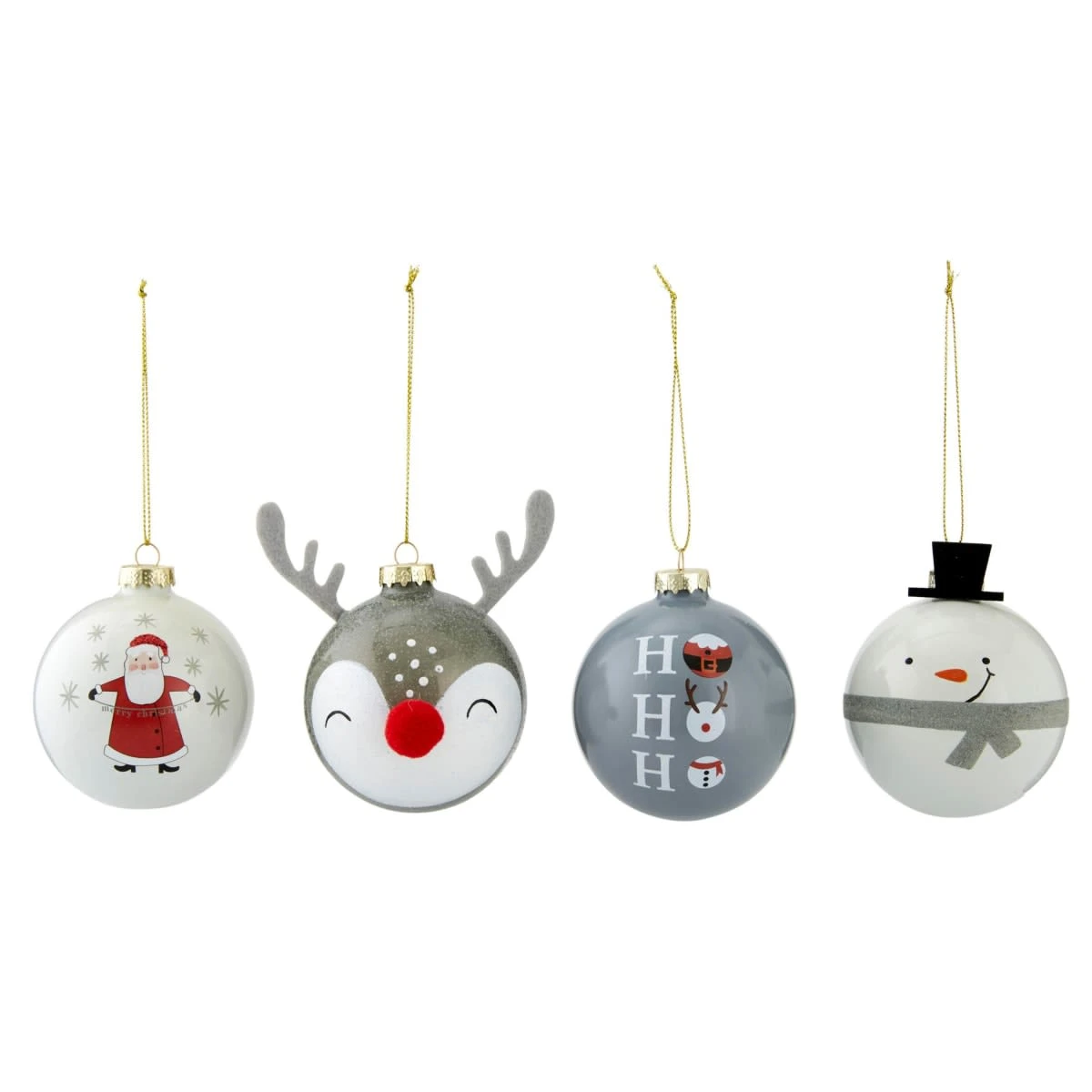 Weihnachtskugel-Set mit vier verschiedenen Motiven.
