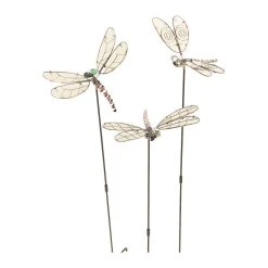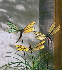 Jede dieser drei Libellen aus Metall hat ihr eigenes Design und leuchtet wunderschön in der Dunkelheit, nachdem sie sich mit Tageslicht aufgeladen hat. Flügel aus phosphorisierendem Material.