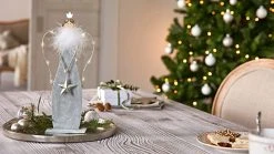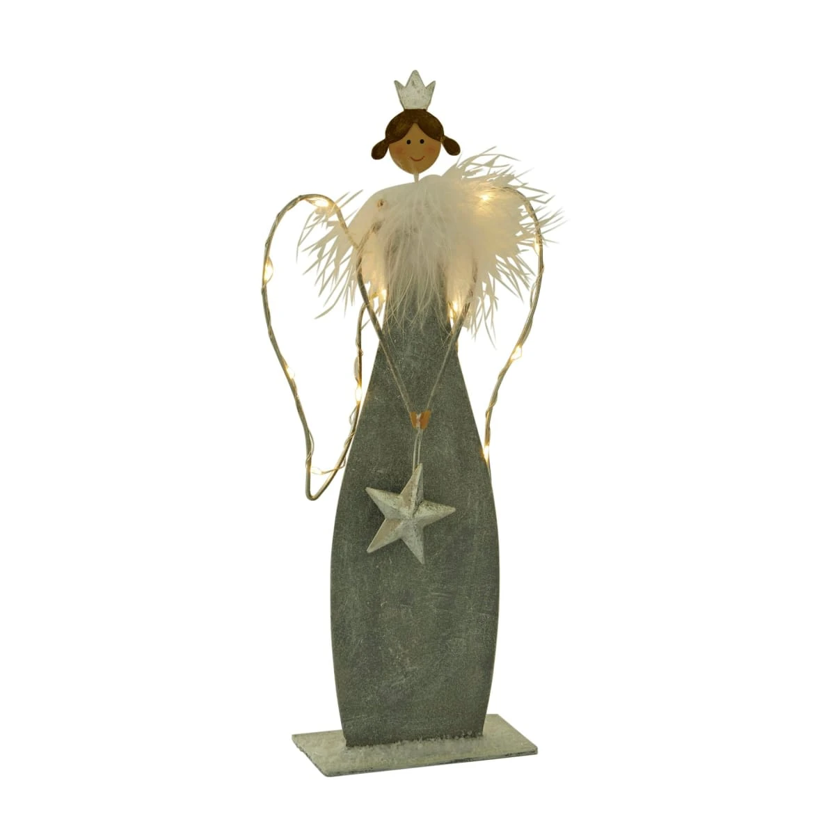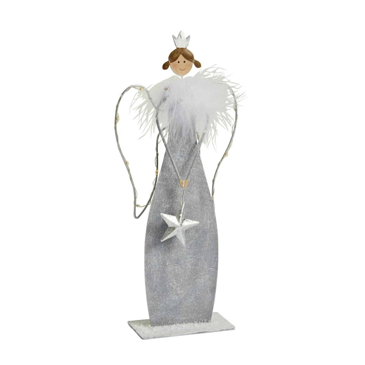 Glitzernder Wehnachtsengel mit Federkragen und beleuchteten Flügeln. Die Dekofigur strahlt, Dank des Glitters, festlich – selbst wenn die 13 warmweißen LEDs gerade nicht leuchten!
