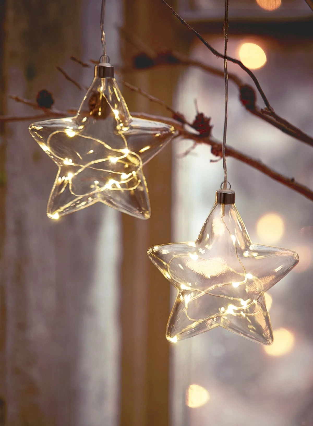 Dekorativer LED-Glasstern mit integrierter Lichterkette