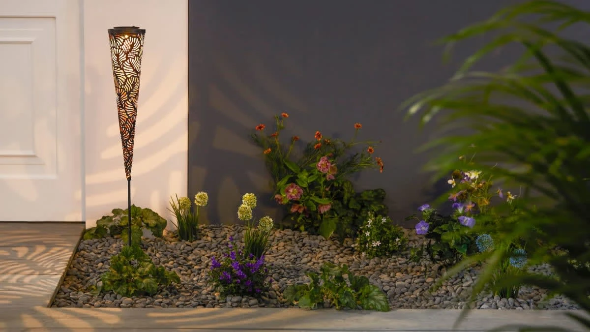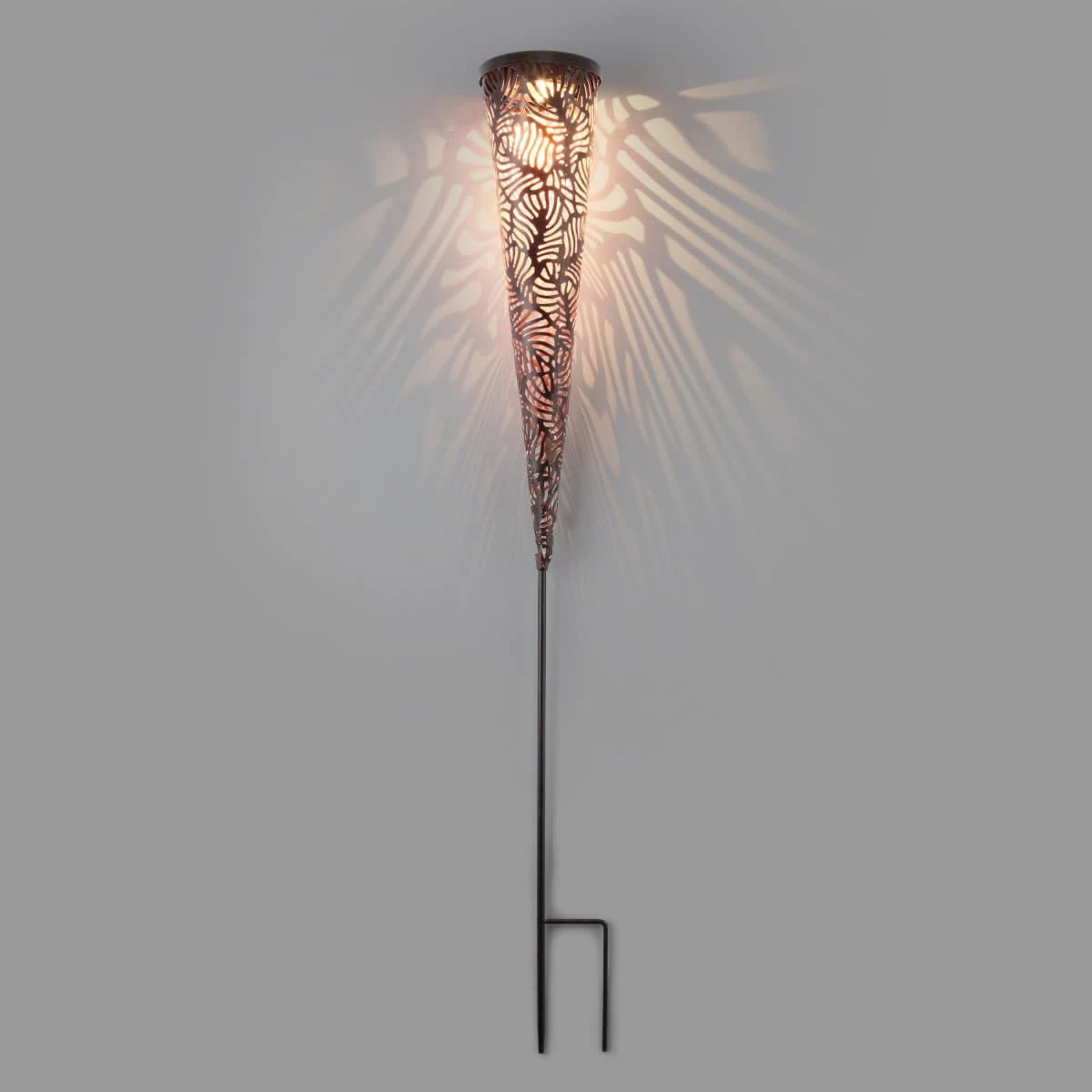 Das schöne Blätter-Muster der Solarleuchte erzeugt bei Dunkelheit tolle Lichteffekte.