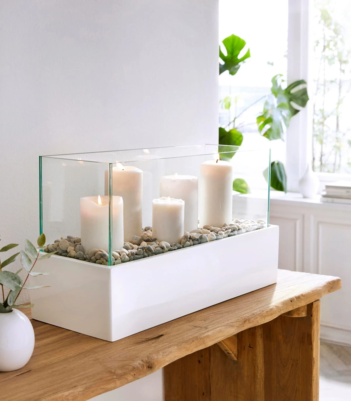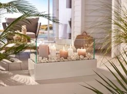– Das moderne Windlicht in hochglänzdem Weiß ist für Stumpenkerzen geeignet und kann individuelle dekoriert werden