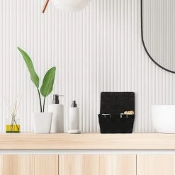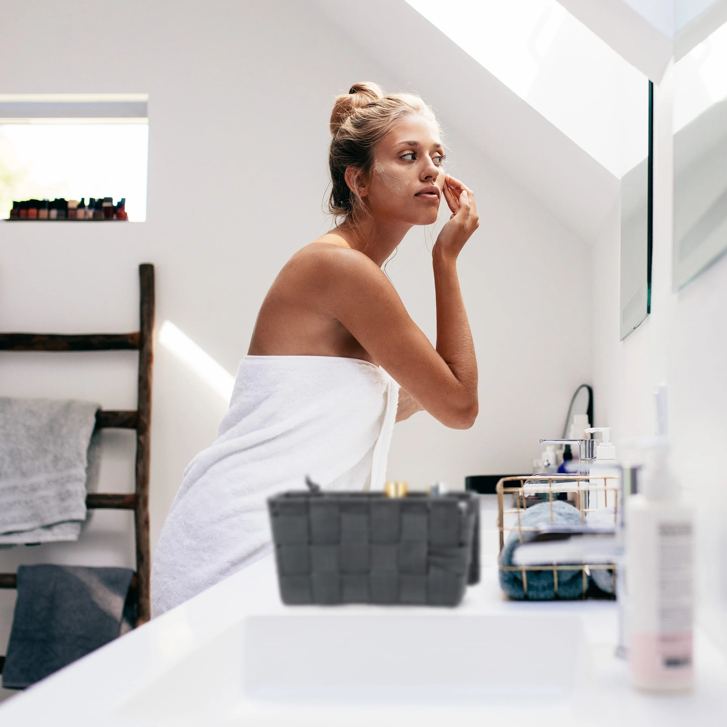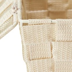 Ob als Tampon-Box oder Kosmetik-Korb, das Körbchen mit Deckel verwahrt Badartikel übersichtlich und diskret. Der geflochtene Badkorb besteht aus pflegeleichtem Kunststoff, welcher der Feuchtigkeit im Bad standhält. Die vielseitige Utensilienbox eignet sich auch für Schlaf- und Wohnzimmer. Nutzen Sie den Korb-Organizer zur Aufbewahrung von Socken, Elektronik und vielem mehr. Dank der schönen Flechtoptik ist auch die Verwendung als Hochzeit-WC-Körbchen oder Präsentkorb möglich.