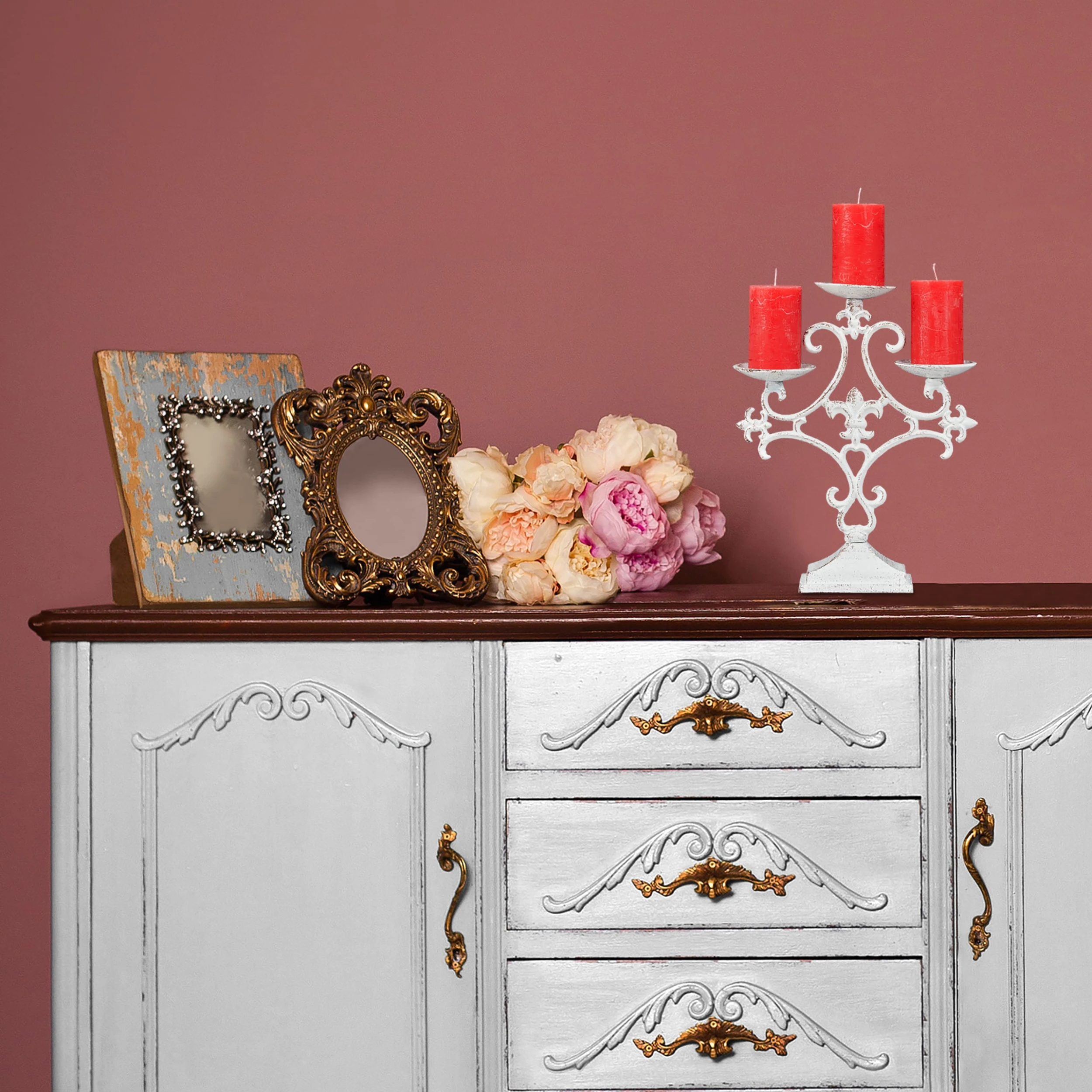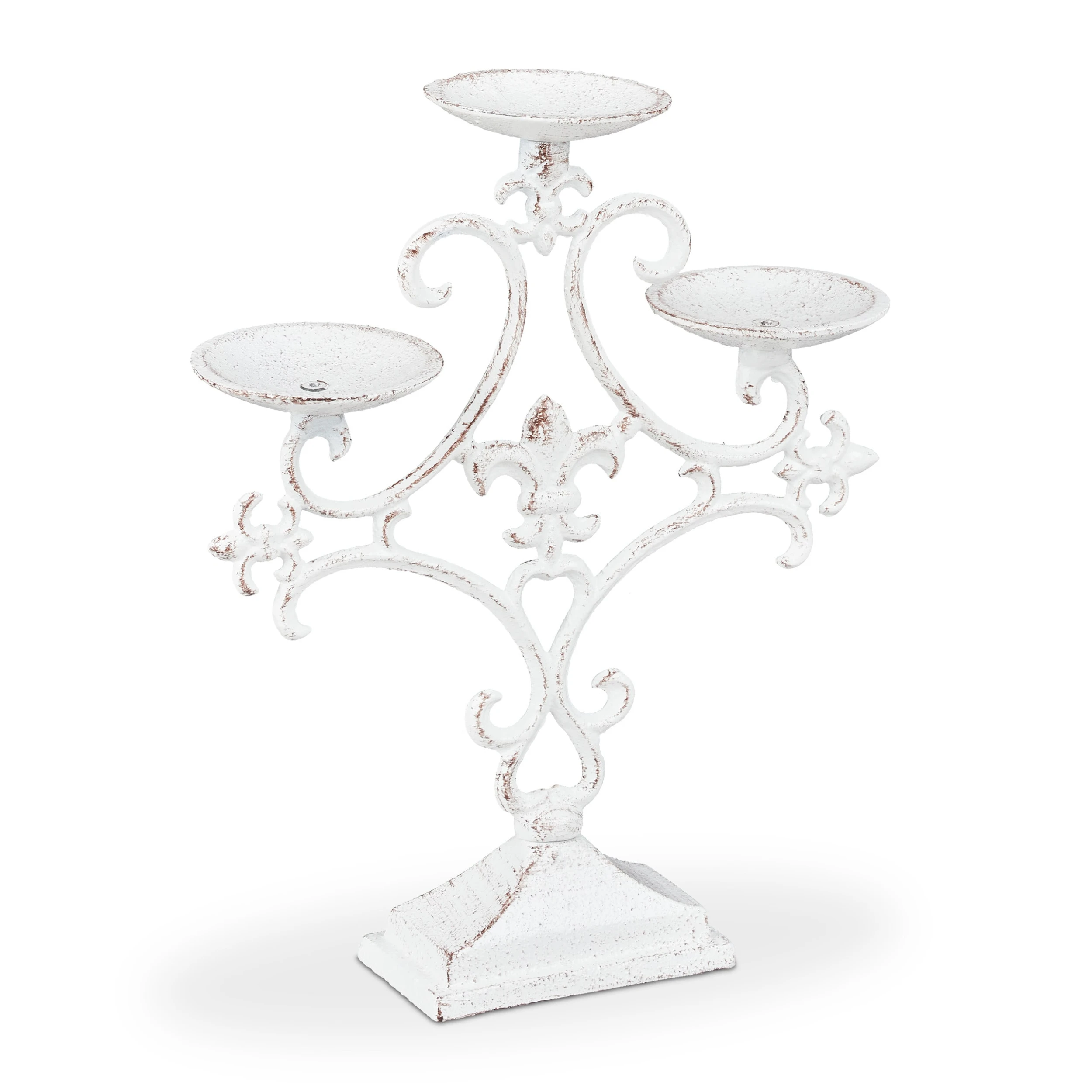Mit dem dekorativen Kerzenständer zaubern Sie im Handumdrehen eine gemütliche Atmosphäre in Ihren 4 Wänden. Der Stumpenkerzenständer besteht aus 3 Schalen, die auf einer verspielten Halterung im barocken Design angebracht sind. Der Kerzenleuchter aus Gusseisen im antiken Stil ist ein garantierter Hingucker auf Tischen, Kommoden oder Sideboards. In dem Metallkerzenhalter finden 3 kleine Stumpenkerzen oder auch Teelichter Platz.