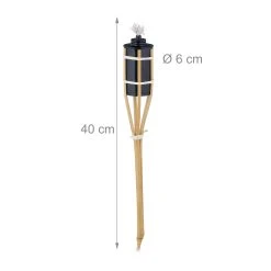 Mit diesen Bambusfackeln im 10er Set bringst Du stimmungsvolle Beleuchtung in Deinen Garten. Platziere die Petroleumfackeln als Deko oder Wegeleuchten bei Hochzeiten, Geburtstagen oder Grillpartys und lasse Dich von der Atmosphäre mitreißen, welche durch die in der Dunkelheit flackernden Flammen erzeugt wird. Mithilfe des angeschrägten Stiels lassen sich die Ölfackeln ganz einfach in den Boden stecken. Anschließend muss nur noch der Öltank befüllt werden, um die Fackeln anzünden zu können.