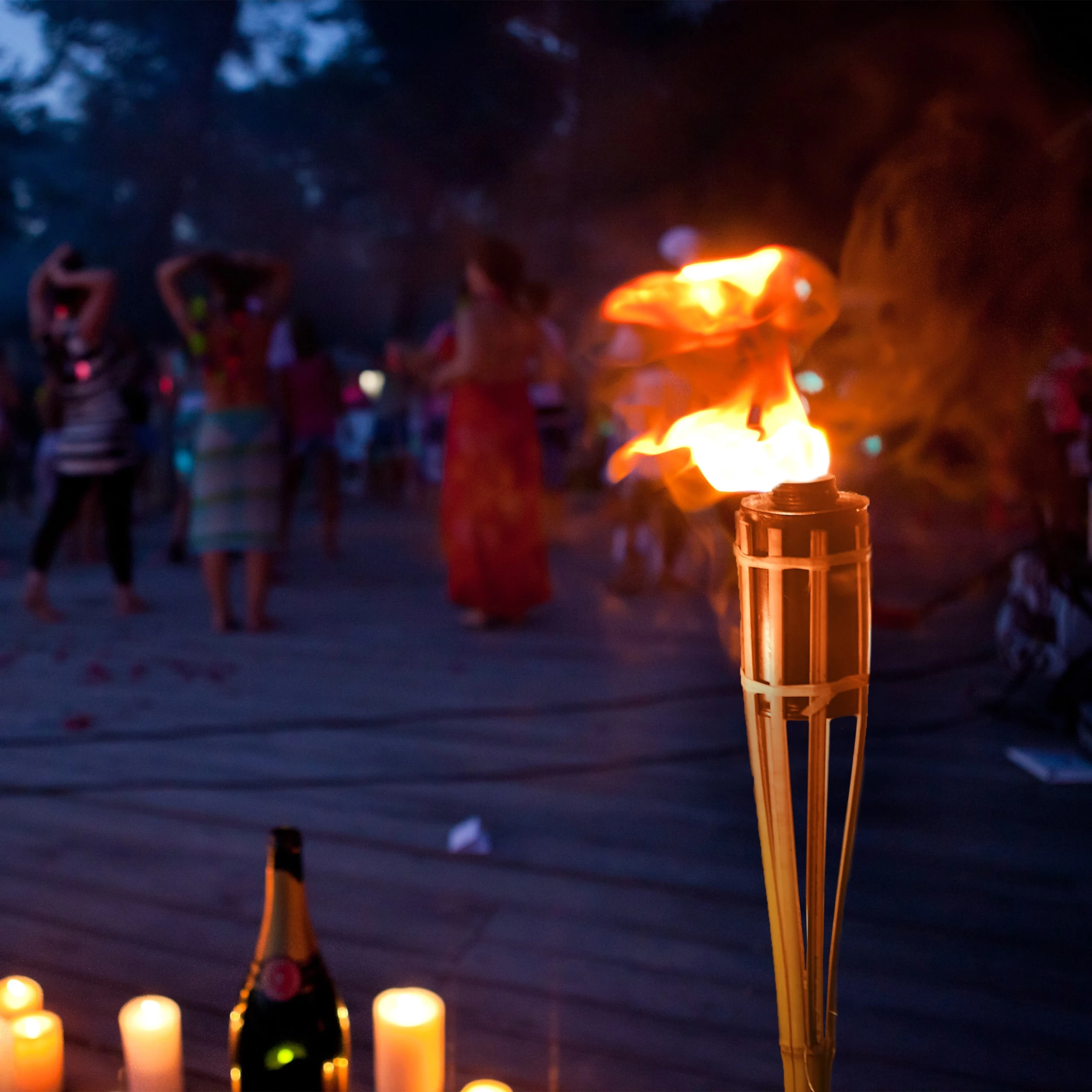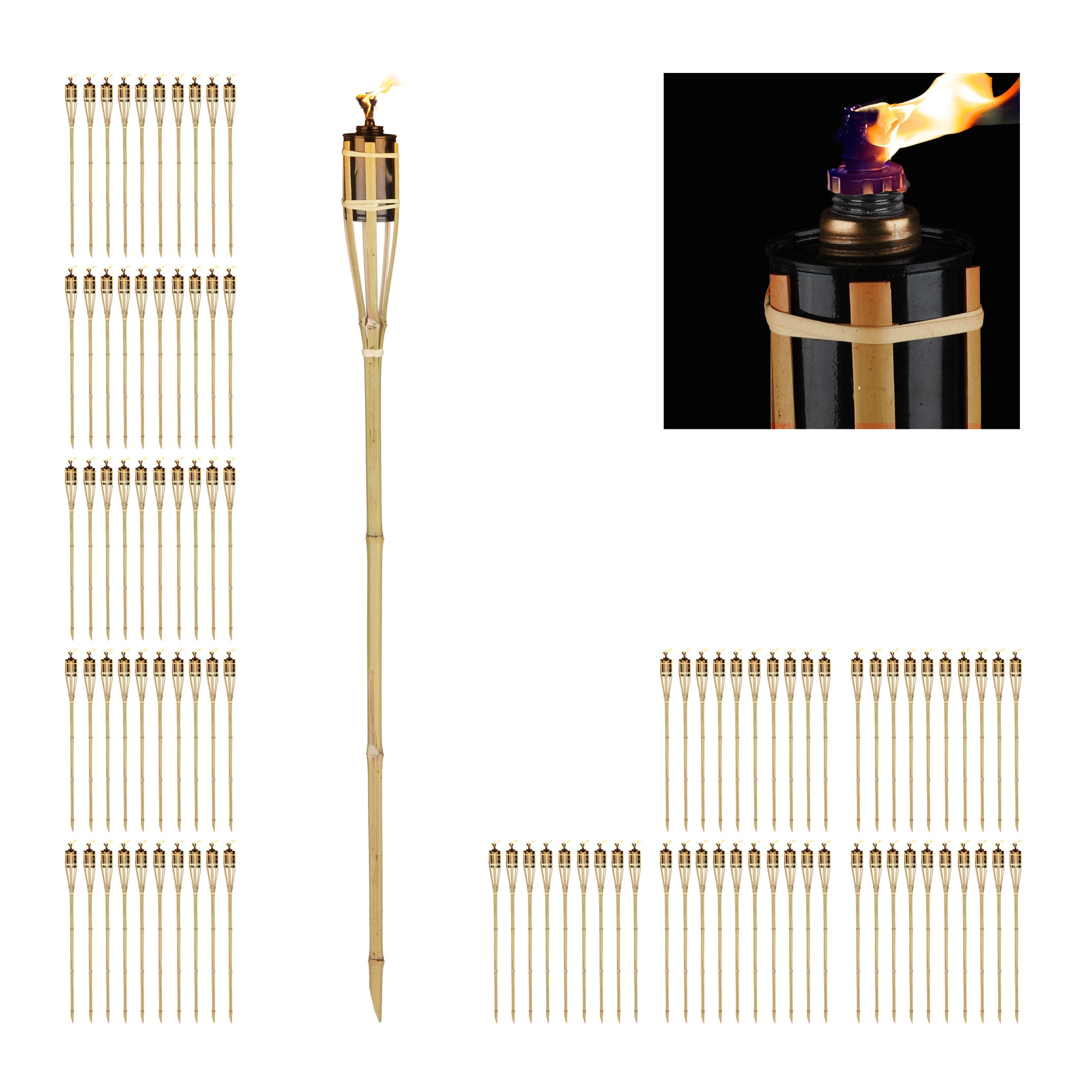 Bringen Sie stimmungsvolle Beleuchtung in Ihren Garten mit dem 100er Set Gartenfackeln. Die Bambus Ölfackeln lassen sich mithilfe des angeschrägten Stiels ganz einfach in den Boden stecken. Ein Docht ist bereits enthalten, weshalb Sie lediglich den Öltank befüllen müssen, um die Fackeln einsetzen zu können. Platzieren Sie die Petroleumfackeln als Deko oder Wegeleuchten in Ihrem Garten und lassen Sie sich von der Atmosphäre mitreißen, welche durch die Flammen erzeugt wird. Nutzen Sie die dekorativen Ölfackeln zu verschiedenen Anlässen, wie Hochzeiten, Geburtstage, Camping oder Grillpartys, um für die richtige Stimmung zu sorgen. Die Bambusfackeln sind vor allem bei Dunkelheit ein besonderes Highlight.