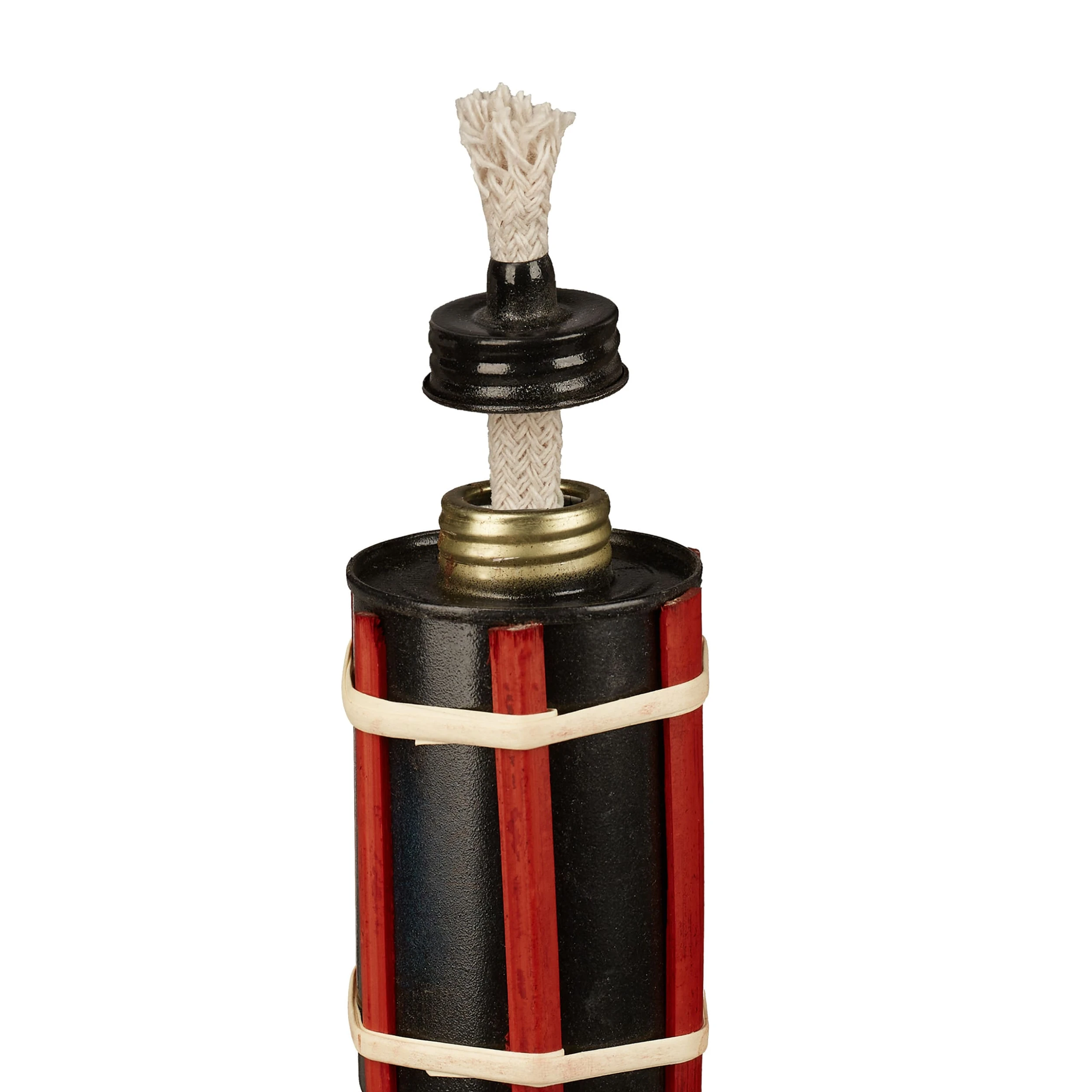 Bringen Sie stimmungsvolle Beleuchtung in Ihren Garten mit den 10 bunten Bambusfackeln. Platzieren Sie die Petroleumfackeln als Deko oder Wegeleuchten bei Hochzeiten, Geburtstagen oder Grillpartys und lassen Sie sich von der Atmosphäre mitreißen, welche durch die in der Dunkelheit flackernden Flammen erzeugt wird. Mithilfe des angeschrägten Stiels lassen sich die Ölfackeln ganz einfach in den Boden stecken. Anschließend muss nur noch der Öltank befüllt werden, um die Fackeln einsetzen zu können.
