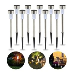 Bringen Sie stimmungsvolle Beleuchtung in Ihren Garten mit den Solarleuchten im 10er Set. Die LED Gartenlampen lassen sich mithilfe der beiliegenden Erdspieße ganz einfach in den Boden stecken. Platzieren Sie die Gartenweg Beleuchtung dort, wo Sie tagsüber ausreichend Sonnenlicht erhalten. Somit können sich die LED Leuchten innerhalb von 6 Stunden voll aufladen, um anschließend ebenso lange zu leuchten. Die stilvoll leuchtenden Gartenlichter sind vor allem in der Dunkelheit ein absolutes Highlight. Nutzen Sie die wetterfesten LED Gartenleuchten zu verschiedenen Anlässen, wie Hochzeiten oder Grillpartys, um für die richtige Stimmung zu sorgen oder als dekorative Kennzeichnung von Gehwegen.