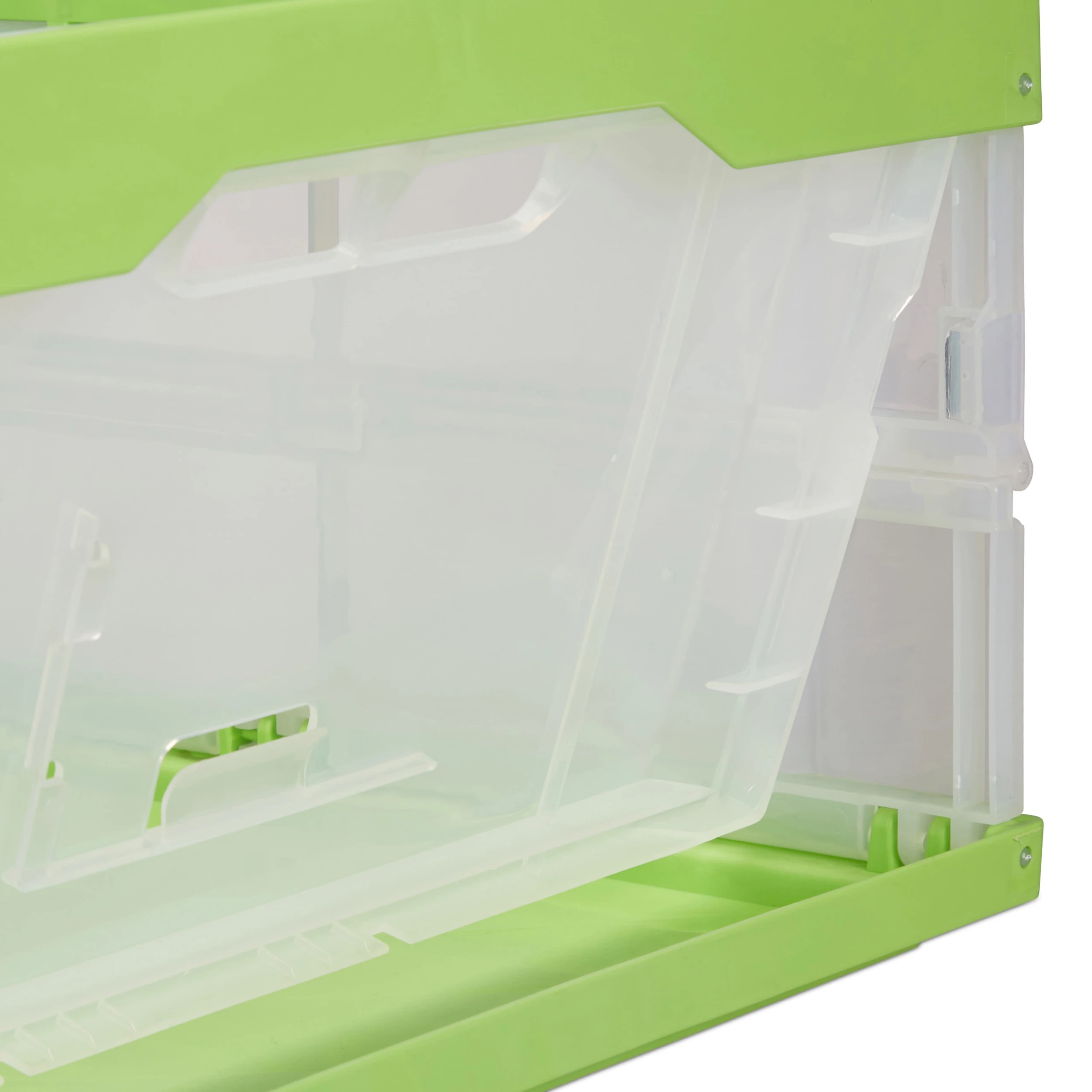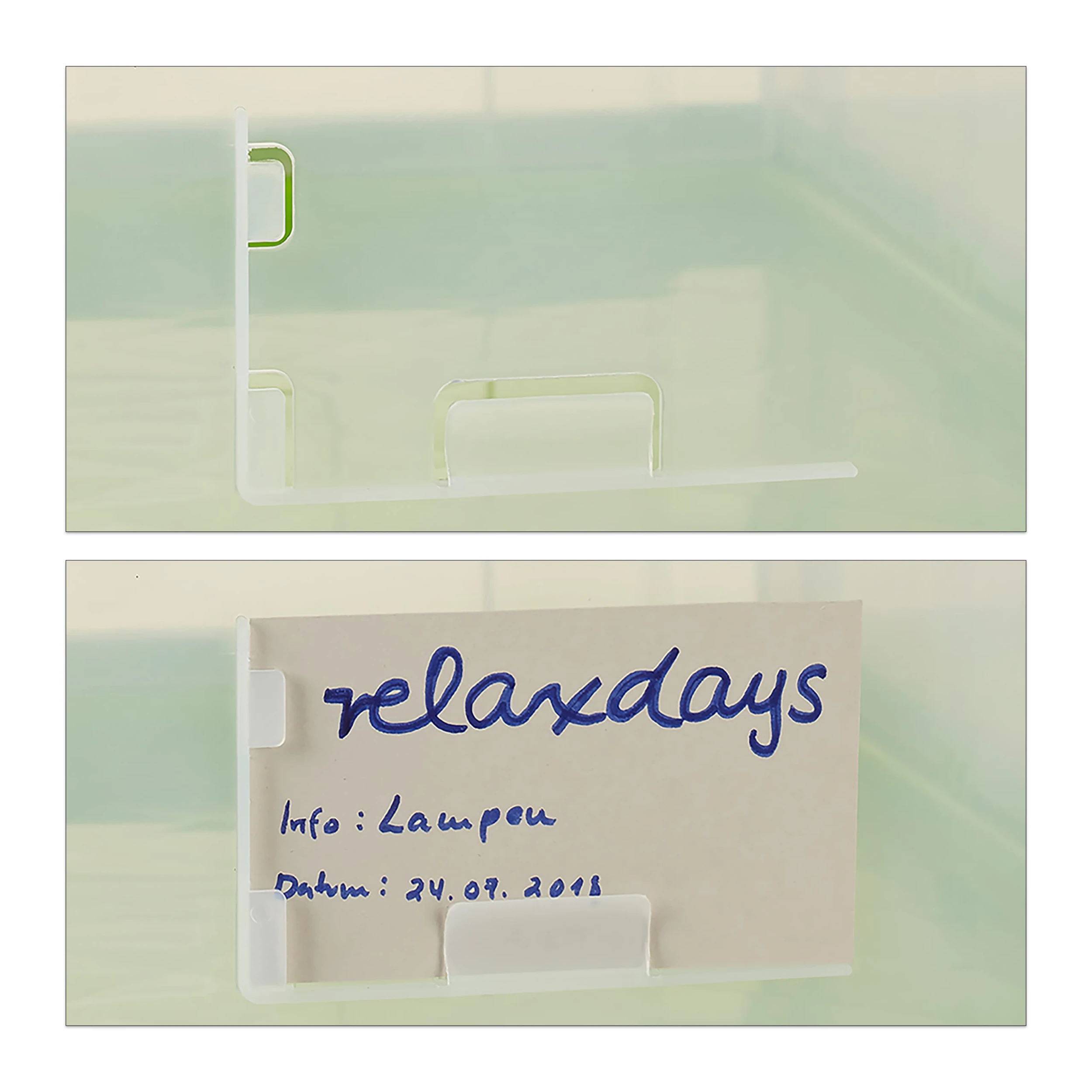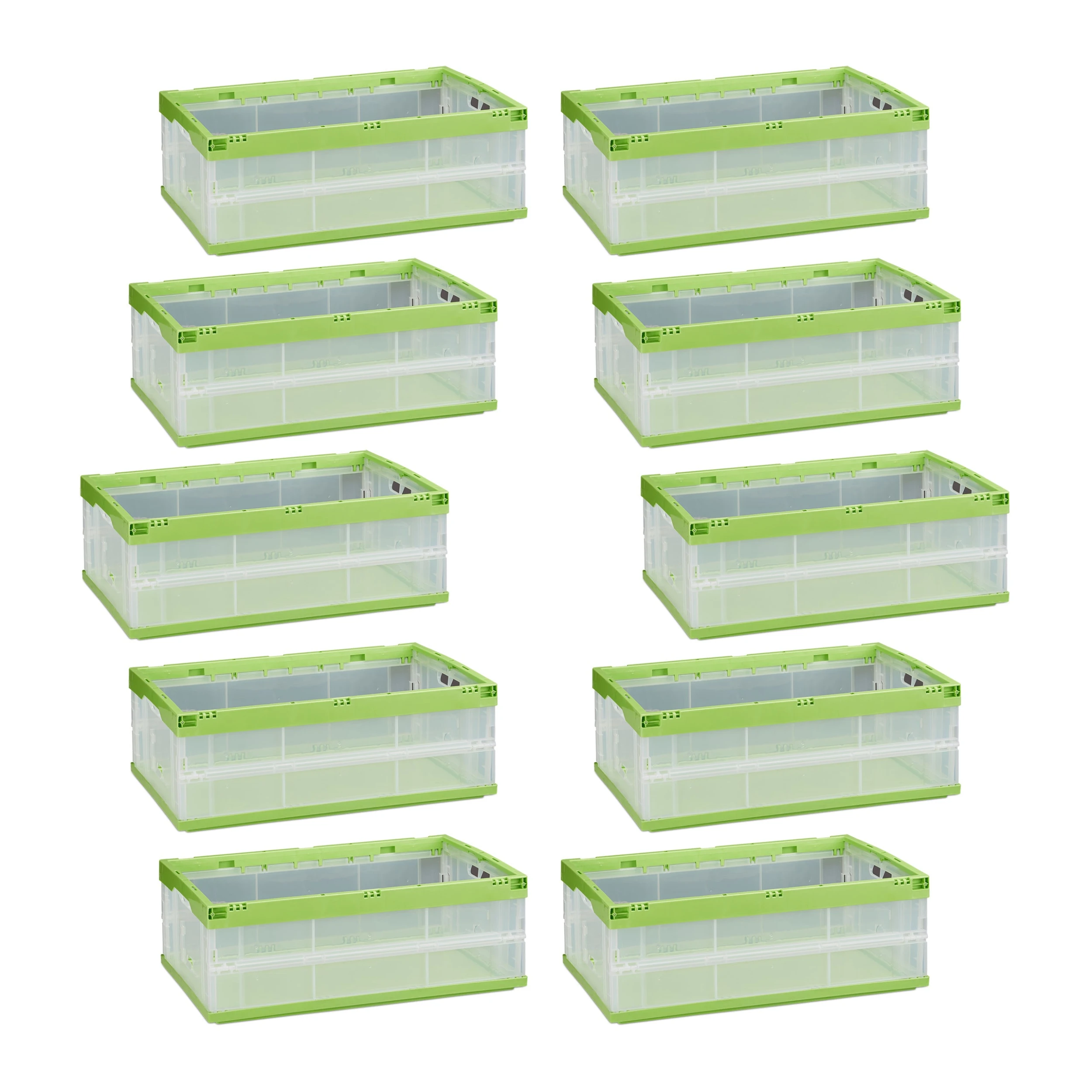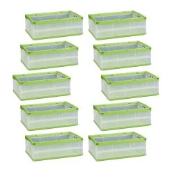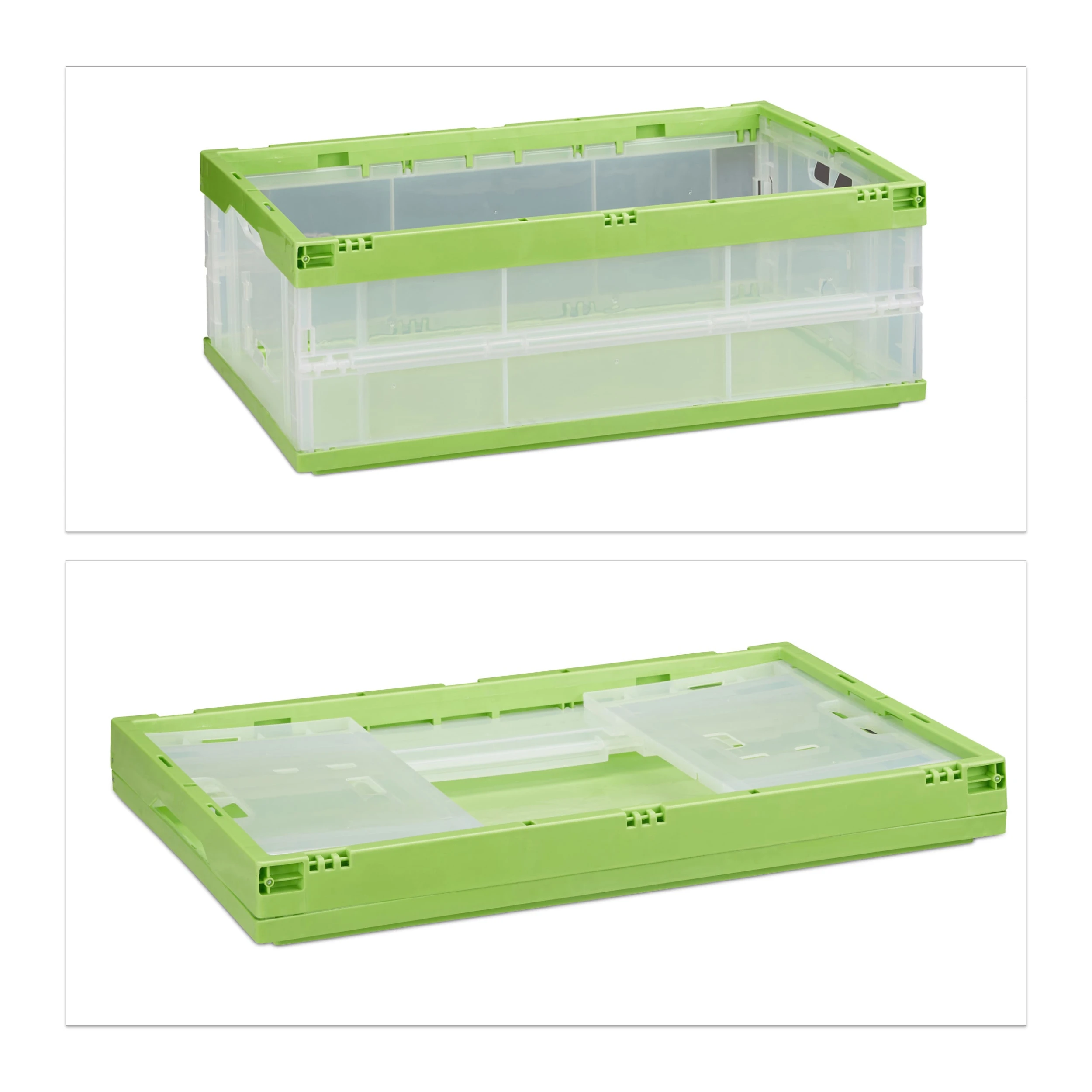 Die Klappbox ist universell einsetzbar. Sie sorgt im Kinderzimmer oder in der Küche für Ordnung, ist aber auch enorm praktisch, falls Sie schwere Einkäufe transportieren wollen. Dank ihrer großen Stabilität eignet sich die Lagerbox aber auch hervorragend für die gewerbliche Nutzung. Sie ist so konstruiert, dass Sie mehrere Aufbewahrungsboxen übereinander stapeln können. Damit Sie – beispielsweise im Keller – jederzeit den Überblick über die Inhalte behalten, sind die Wände transparent und verfügen über 2 Einschubfächer für Beschriftungen. Die Aufbewahrungsbox lässt sich nach dem Gebrauch einfach zusammenklappen und platzsparend verstauen.
