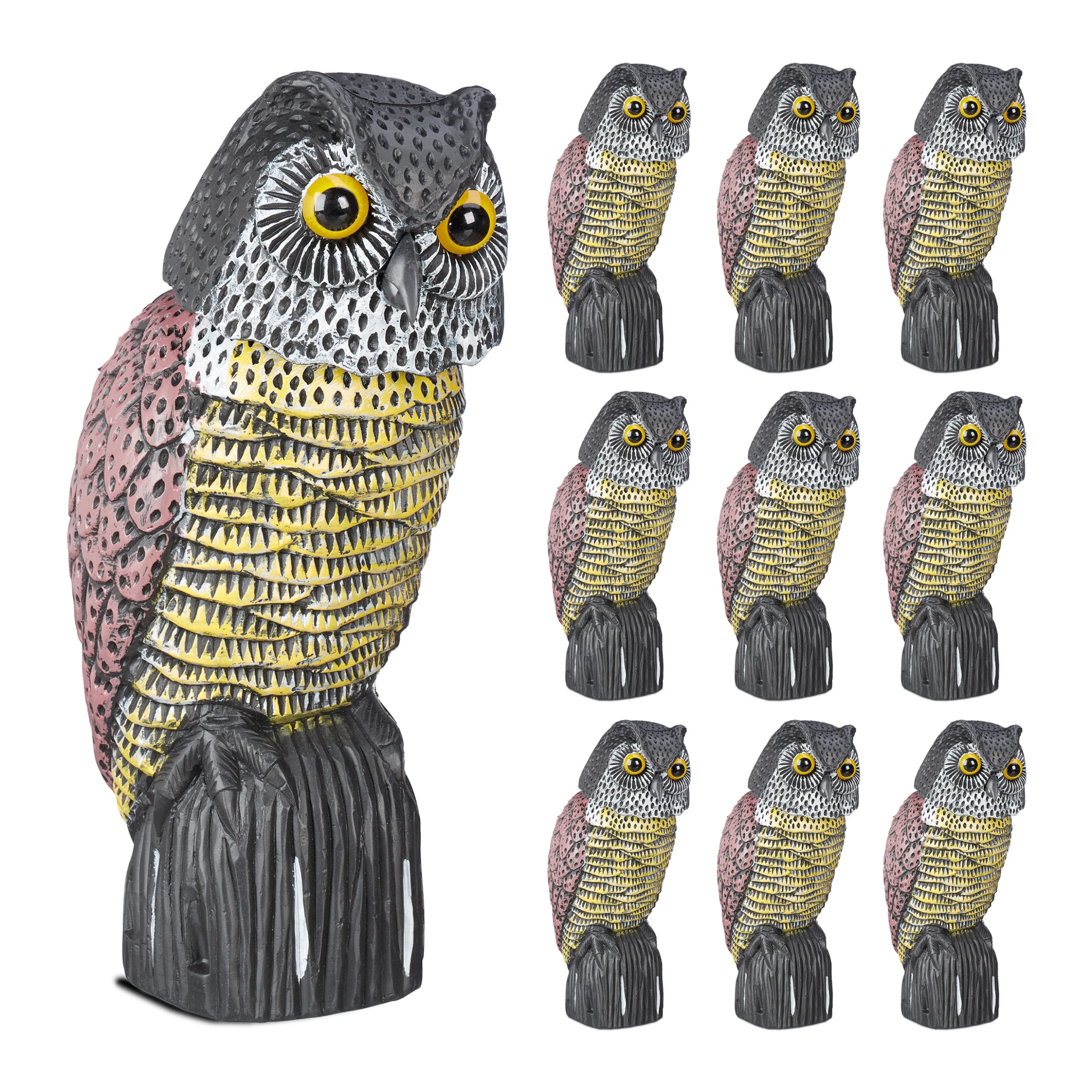 Möchten Sie auch lästige Tauben und kleine Nager loswerden, die sich an Ihrem Gemüsegarten vergehen oder den Balkon mit Unrat verschmutzen? Die Eule erschreckt unerwünschte Tiere durch Ihre realitätsnahe Größe und die Bewegung des im Wind wackelnden Kopfs. Auf andere Tiere wirkt es, als säße dort eine echte Eule. Die leuchtend-großen Augen lassen die Eule noch lebendiger wirken. Für einen stabilen Stand befüllen Sie den Taubenschreck über die Öffnung am Boden mit Sand oder Kieselsteinen. Auch als hübsche Dekofigur im Garten, auf dem Balkon oder der Terrasse ist die Eulenattrappe geeignet.